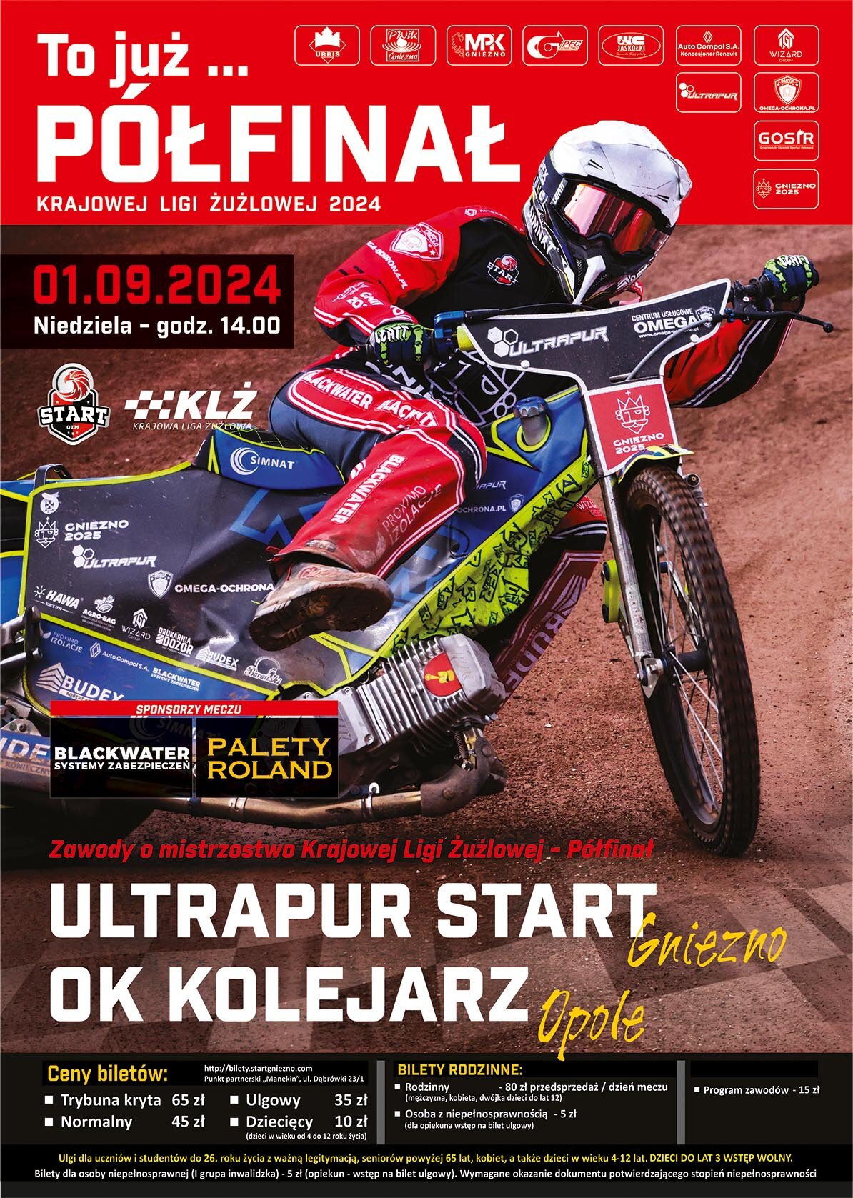 Żużlowcy Ultrapur Start Gniezno są o krok od awansu do finału Krajowej Ligi Żużlowej. Tam już czeka zespół Unii Tarnów, który w dwumeczu okazał się lepszy od Polonii Piła. Drugiego finalistę poznamy w niedzielne popołudnie, 1 września. O godzinie 14 rozpocznie się mecz przy W25, gdzie drużyna prowadzona przez Tomasza Fajfera zmierzy się z OK Kolejarzem Opole. W pierwszym spotkaniu, w stolicy polskiej piosenki, górą byli czerwono-czarni (46:44).