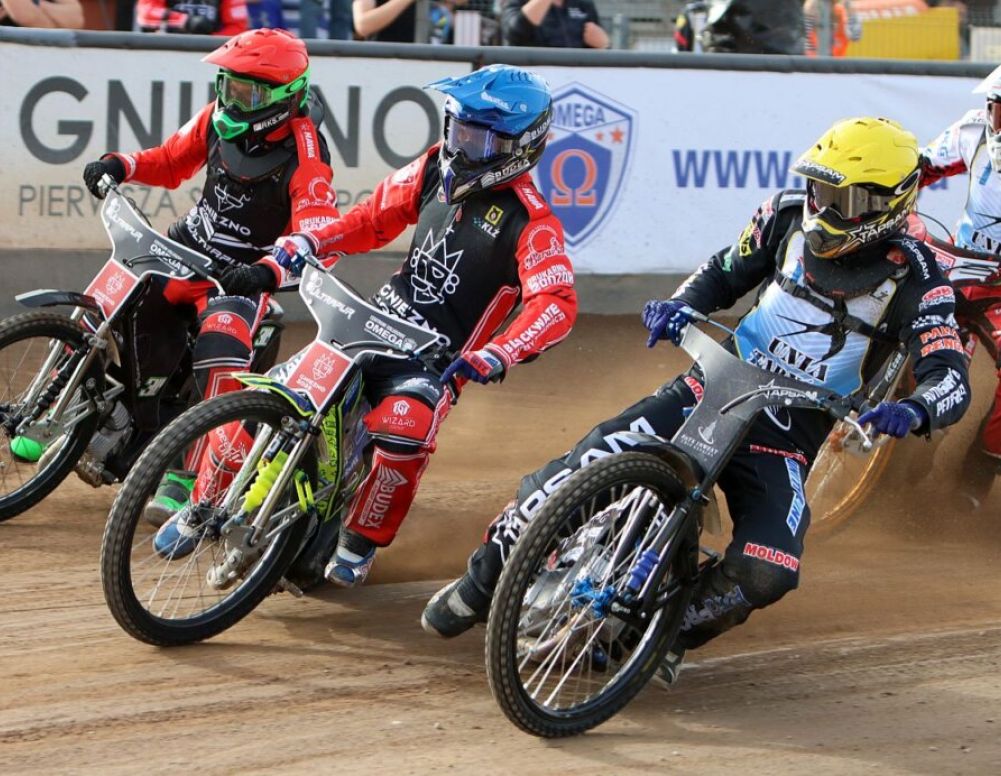 Startowcy prowadzili od początku spotkania rozegranego na torze żużlowym Stadionu Miejskiego Jaskółcze Gniazdo w dzielnicy Mościce, sukcesywnie powiększając przewagę. Komplet po dwóch startach miał Mikołaj Czapla, a po pięć punktów na swych kontach zgromadzili Kevin Fajfer i Sam Masters. Tuż za półmetkiem zmagań gnieźnianie mieli już osiem punktów przewagi. W drugiej części spotkania gospodarze zaczęli jednak odrabiać straty. Wyścig IX wygrali podwójnie, kiedy na starcie został nieco Kacper Gomólski, a Kyle Howarth nie dał rady Danielowi Jeleniewskiemu i Marko Lewiszynowi. Po dwunastu gonitwach był remis 36:36.