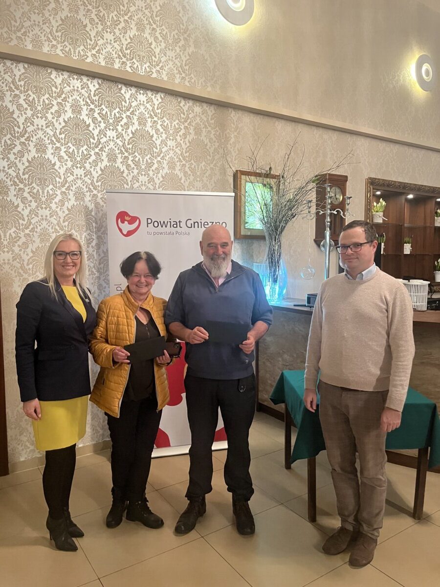 Nagrody dla najlepszych par tego turnieju, ufundowane przez: starostę gnieźnieńskiego Tomasza Budasza, Polską Akademię Fryzjerstwa (Poznań), sklep Sycylijska Uczta – Delikatesy Włoskie (Baranowo) oraz restaurację Leo Libra i doradcę restrukturyzacyjnego – Darię Szczepańską (Gniezno), wręczyli: Ewa Barłoga-Purol – członek Zarządu Powiatu Gnieźnieńskiego oraz Maciej Szczepański – prezes Gnieźnieńskiego Klubu Brydża Sportowego. Ewa Barłoga-Purol, w imieniu Starosty Gnieźnieńskiego i swoim, gratulowała zwycięskim parom, doceniając ich zaangażowanie i walkę do samego końca o jak najlepszy rezultat. Miłym gestem było rozlosowanie również dodatkowych nagród wśród wszystkich uczestników turnieju. Gnieźnieński Klub Brydża Sportowego dziękuje wszystkim, którzy wsparli organizację tego turnieju, zwłaszcza fundując nagrody.
