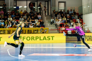 Już pierwsze minuty pokazały różnicę w doświadczeniu obu zespołów. Po 10 minutach „Miedziowe” prowadziły 6:4, a chwilę później przewaga zaczęła się wyraźnie powiększać. W Zagłębiu wyróżniała się Natalia Janas oraz Kinga Jakubowska W 15 minucie na tablicy widniał wynik 11:6 dla gości, a do przerwy przyjezdne wygrywały 19:14. Gnieźnianki próbowały odpowiadać szybkimi akcjami, ale skuteczność mistrzyń Polski była nie do zatrzymania.