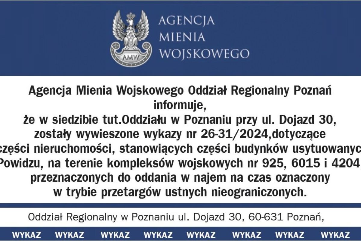Agencja Mienia Wojskowego ogłasza przetarg na NAJEM nieruchomości w Powidzu