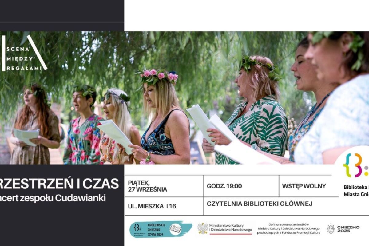 Takie cuda tylko w bibliotece! W piątek, 27 września o godzinie 19 w bibliotecznej Czytelni przy ul. Mieszka I 16 odbędzie się kolejny nietypowy koncert w ramach „Sceny między regałami”. Tym razem wystąpią „Cudawianki” – zespół śpiewu białego. Koncert „Przestrzeń i Czas” to szansa spędzenia niezwy…