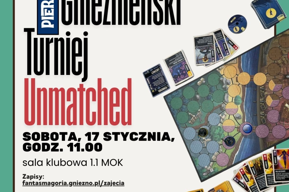 Stowarzyszenie Fantasmagoria oraz Miejski Ośrodek Kultury w Gnieźnie zapraszają wszystkich lubiących pełne emocji rozgrywki na I Gnieźnieński Turniej w grę planszową „Unmatched”, który wystartuje już w sobotę, 17 stycznia o 11.00 w Miejskim Ośrodku Kultury (Ogród Zimowy).