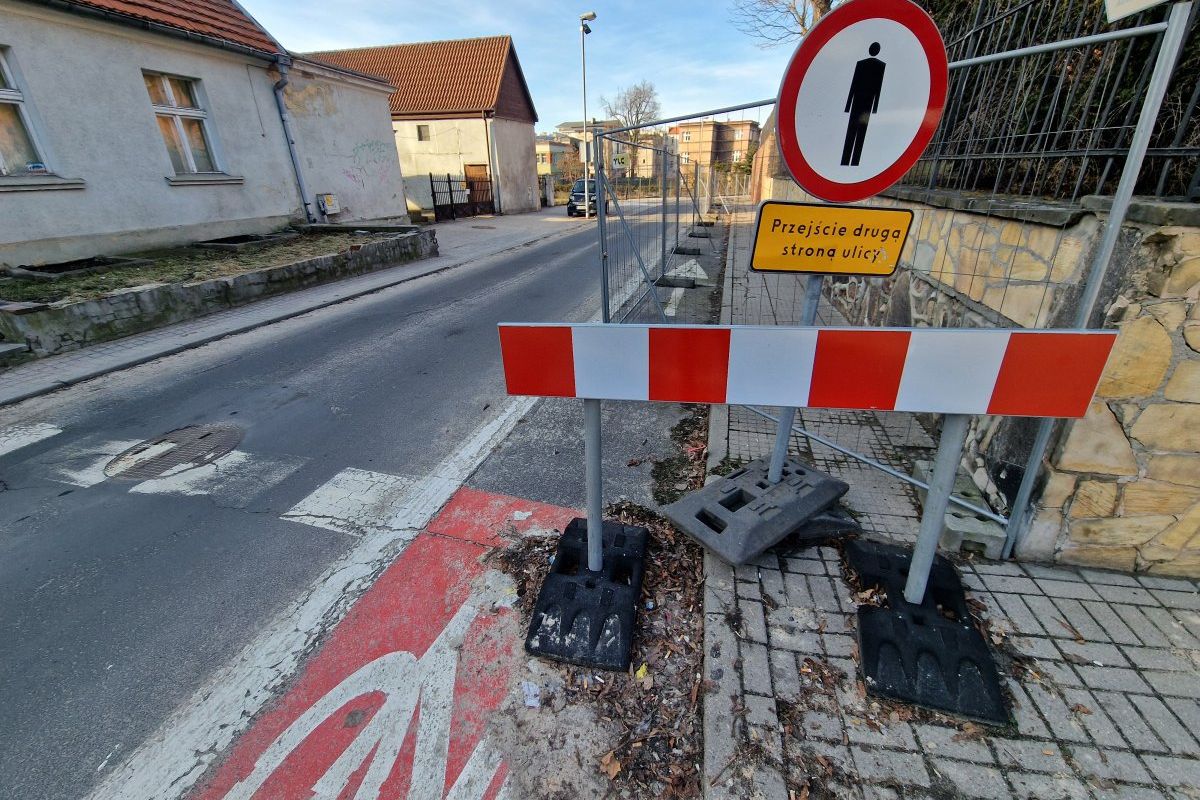 Mur oporowy kościoła, a miejska nieruchomość. Od 2 lat fragment ulicy jest zamknięty. Do kiedy?