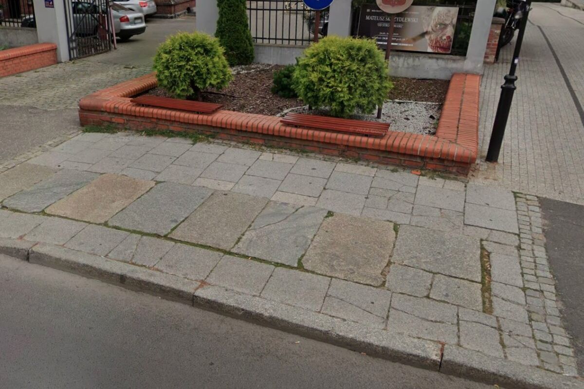 Krzywe i spękane płyty chodnikowe – tak wygląda dziś chodnik w części ulicy Łubieńskiego w Gnieź…
