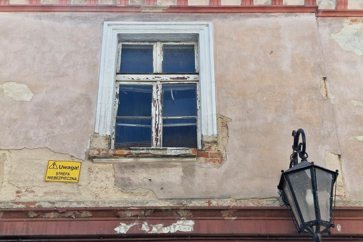 Kamienice w opłakanym stanie. Znowu fragment elewacji spadł na chodnik