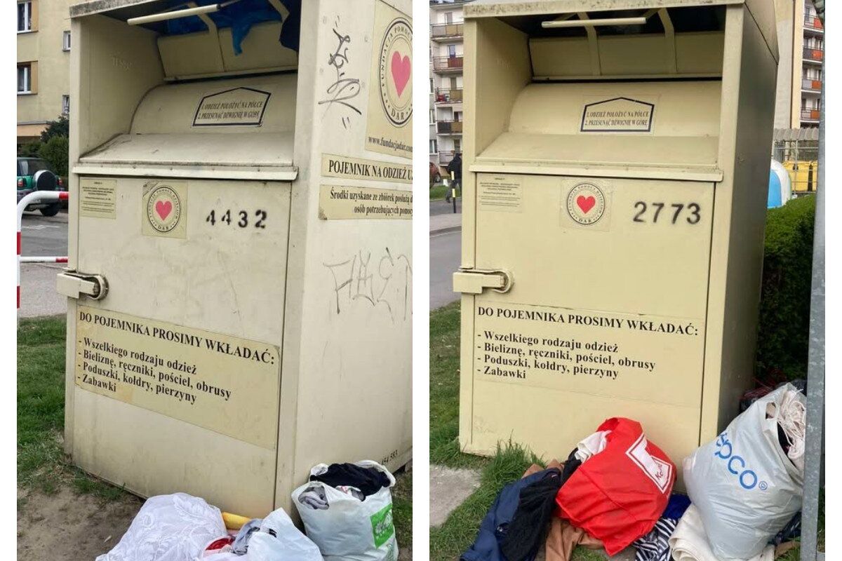 Nielegalne (i legalne) kontenery na odzież i nieład wokół nich