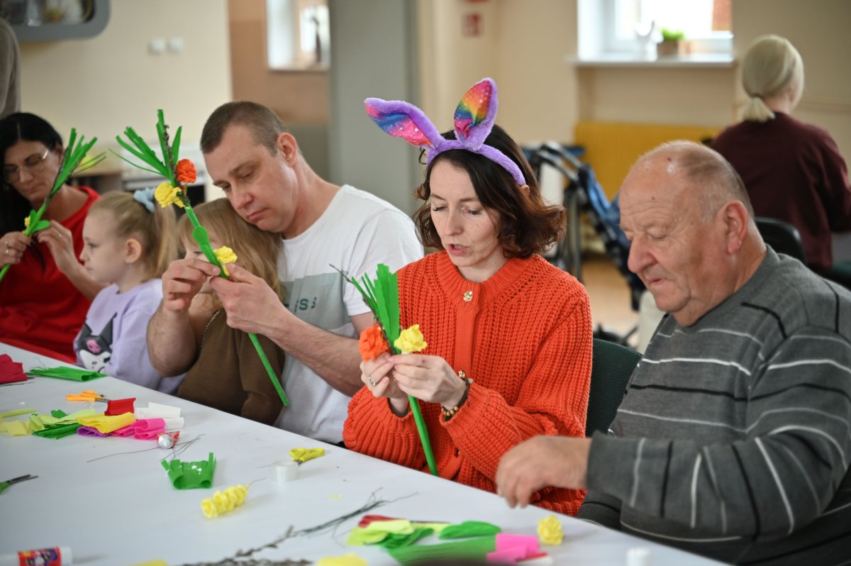 Członkowie mogileńskiego Stowarzyszenia Niebieskie Serducho, wzięli udział w warsztatach tworzenia palm wielkanocnych połączonych z Treningiem Umiejętności Społecznych. Spotkanie było kolejnym działaniem mającym przeciwdziałać wykluczeniu społecznemu i wspierać młodych ludzi w oswajaniu nowych sytuacji.