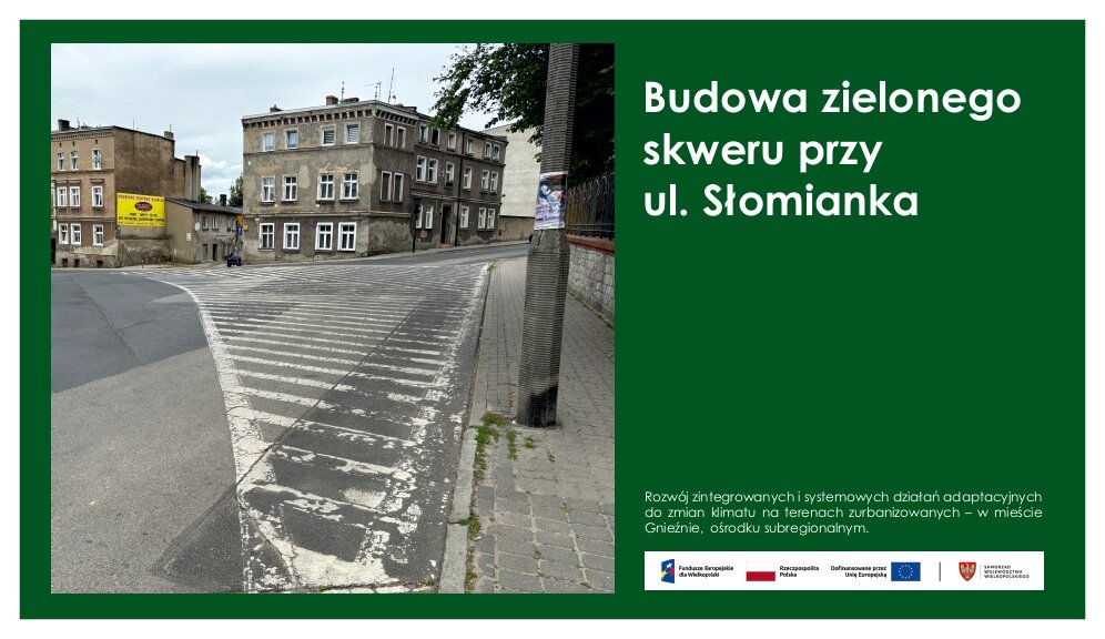 - Zielone skwery, czyli eliminowanie „wysp ciepła”. Na rozwidleniu ulic Słomianka i św. Wawrzyńca znajduje się asfaltowa strefa z wyłączonym ruchem. To duża przestrzeń nie spełniająca żadnej roli. W planach ma zamienić się właśnie w zielony skwer. – Przy okazji ten inwestycji wykonamy część instalacji rozdzielającej kanalizacje deszczową i sanitarną. Ta pierwsza będzie odprowadzała wody opadowe z ulic Łaskiego, Słomianka, Jeziorna, Tumska do jeziora Jelonek, zwanego „Wenecją”. Chcemy za pomocą tej wody podnieść poziom tego jeziora i przy okazji stworzyć nowe skwery – mówi Michał Powałowski, prezydent Gniezna. Jak dodaje J. Śmigielska, wykorzystując spadki ulic w kierunku jeziora, powstanie główna zlewnia z rurociągiem o przekroju metra. Pozwoli to na podłączanie w przyszłości do tej kanalizacji kolejnych remontowanych ulic. Co więcej, budowa nowej kanalizacji deszczowej spowoduje wymianę nawierzchni ulic pod którymi się ona znajdzie.
