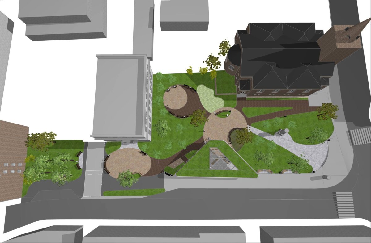 Na skwerze zostaną dosadzone nowe drzewa, m.in. platany i wiśnie, oraz zieleń niska w formie krzewów i bylin (róże, hortensje, śnieguliczka). Istotną częścią nowego założenia będzie ogród deszczowy oraz zatoka postojowa przy szkołach podstawowej i średniej. To tzw. miejsce do odbierania i przywożenia uczniów „Kiss&Ride”, które umożliwić ma postój tylko na moment. Całość założenia uzupełnią krzesła, stoły, ławki, stojaki rowerowe i kosze na śmieci. Zwycięska w przetargu firma będzie miała pół roku na wykonanie prac.