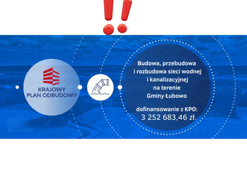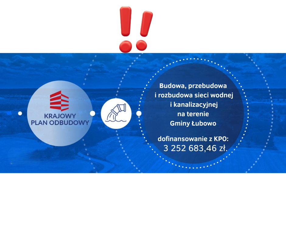W minionym tygodniu Zarząd Województwa Wielkopolskiego podjął uchwałę aktualizującą listę projektów uprawnionych do uzyskania pomocy w ramach działania pn. „Inwestycje w zrównoważoną gospodarkę wodno – ściekową na terenach wiejskich”, realizowanego w Krajowym Planie Odbudowy i Zwiększania Odporności. Wśród pozytywnie ocenionych przedsięwzięć znalazł się wniosek przygotowany przez Gminę Łubowo.