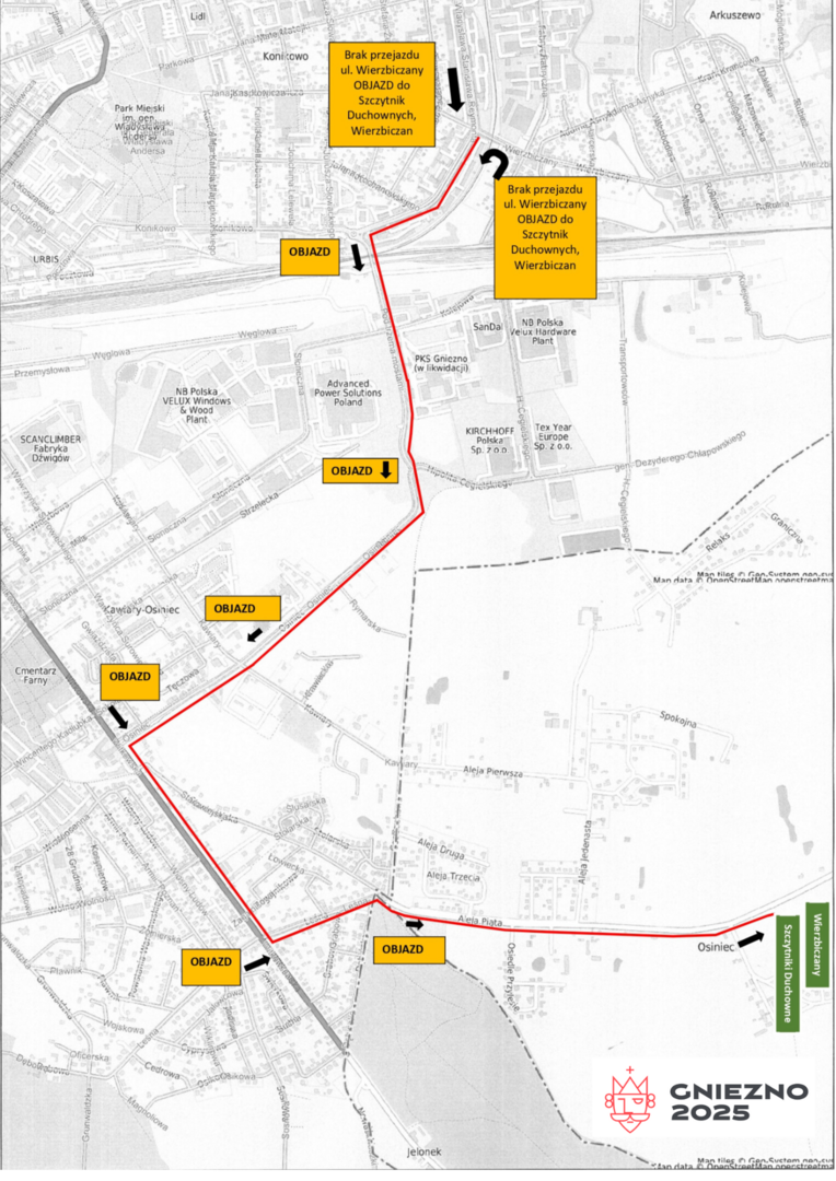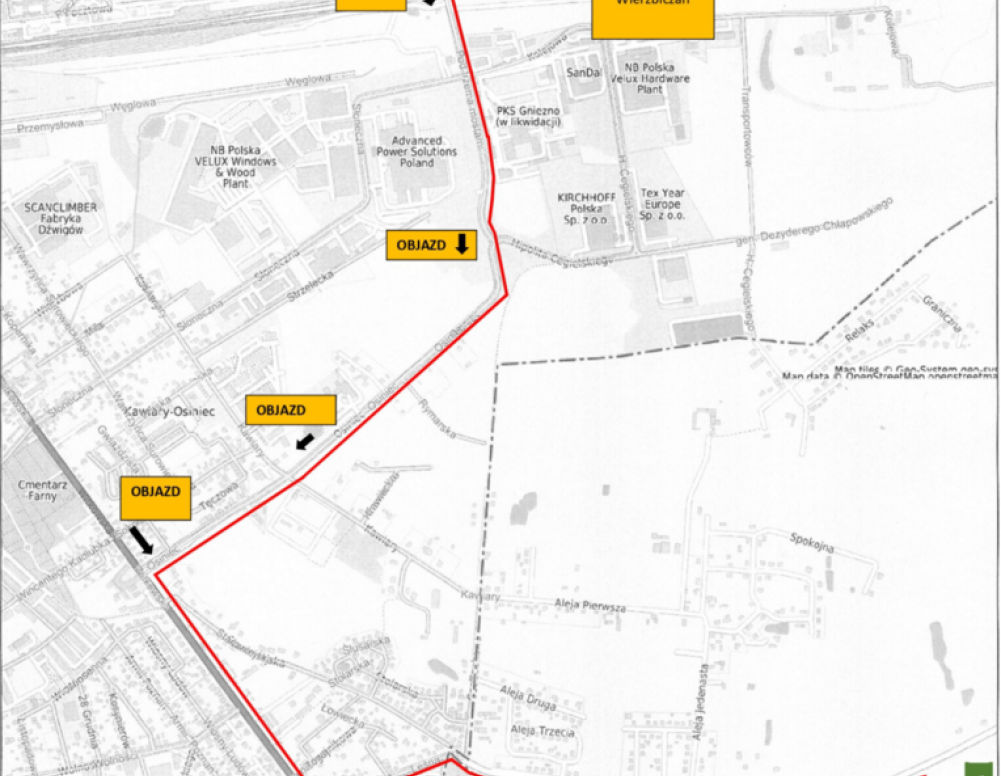 Z uwagi na wysoki stan wód gruntowych, który wpływa na wydłużenie prac kanalizacyjnych przy przebudowie ulicy Wierzbiczany, konieczne stało się dłuższe zamknięcie odcinka ulicy, od skrzyżowania z ulicą Pszeniczną i Dożynkową, do granic miasta. Utrudnienie w tym miejscu potrwać ma do 30 czerwca. Objazd tego odcinka będzie prowadzony tak jak dotychczas przez miejscowość Osiniec, a dalej także przez Szczytniki Duchowne i Wierzbiczany.