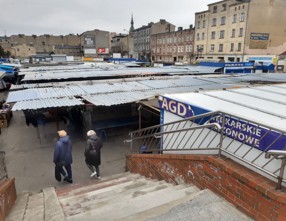 Przez lata w tym miejscu funkcjonowało targowisko, ale jego schyłek zaczął się w momencie otwarcia w sąsiedniej dawnej rzeźni centrum handlowego. Ubywająca liczba handlujących apelowała od lat o renowację tego miejsca, którego wygląda nie przystoi żadnemu europejskiemu miastu. Ostatecznie to pandemia zakończyła historię tego miejsca, ale władze miasta jeszcze próbowały podtrzymać w tym miejscu handel. Zaplanowany do wybudowania pawilon okazał się jednak za drogi w realizacji. Jego budowa mogła kosztować nawet 7,8 mln złotych, więc ostatecznie z inwestycji zrezygnowano. Część „straganów” – choć trudno je tak nazwać, kiosków i prowizorycznych zadaszeń rozebrano. W czerwcu 2022 roku Michał Powałowski, wówczas wiceprezydent miasta, obiecał garstce handlujących na targowisku przedsiębiorców, że mogą oni pracować w tym miejscu jeszcze przez dwa lata. Ten czas właśnie minął, a rezultatem tego są wspomniane projekty uchwał o sprzedaży miejskiego majątku.