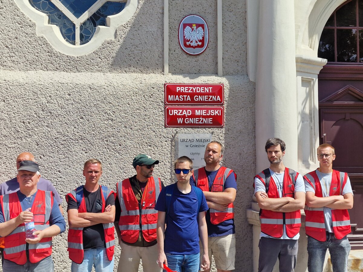 Spontaniczny wiec pod Urzędem Miejskim, w poniedziałek 30 czerwca, miał być pokazem determinacji strajkujących i apelem do włodarza miasta o realizację ustaleń sprzed dwóch tygodni, kiedy Michał Powałowski zaoferował mediację między stronami sporu, co uzyskało wsparcie radnych ponad podziałami. Wybrali oni po swoim przedstawicielu z każdego klubu radnych. W ocenie związku zawodowego, sytuacja w zakładzie się pogarsza, a do pracy są przyjmowani pracownicy agencyjni, którzy zastępują strajkujących. W ich ocenie to łamanie prawa. Strajkujący domagali się też wyjaśnienia informacji, które do nich docierają, że do mediacji prezydent chce też włączyć pracowników z Jeremiasa, którzy nie są stroną sporu. Dla strajkujących to niedopuszczalne, bo tylko związek ma do tego prawo. – Powaga urzędu zobowiązuje do przestrzegania prawa – przekazywał pod magistratem Bartosz Kurzyca z OZZ Inicjatywy Pracowniczej. Jak dodał, wszyscy są pod presją amerykańskiej firmy prawniczej reprezentującej zakład, ale nie można się jej dać złamać. – Apelujemy, żeby prezydent czuł się gospodarzem tego miasta i reprezentował jego interesy – dodał związkowiec. Kilkudziesięciu pracowników domagało się od prezydenta mediacji w ramach sporu zbiorowego, czyli pomiędzy jego stronami, a nie innymi podmiotami, które chcą teraz włączać się do rozmów. Wzywali prezydenta do zejścia do nich i przekazania im swojego stanowiska, odnoście „największego strajku w III RP w Gnieźnie” – jak chórem podkreślali. „Zapraszamy” – skandowano pod budynkiem magistratu. Jak wymieniał B. Kurzyca, pod fabryką strajkujących odwiedzali już parlamentarzyści, radni, ministrowie, ale nie było tam prezydenta. – To jest spór o przyszłość tego miasta – podkreślał.