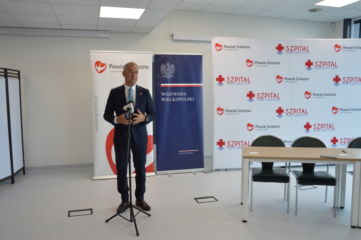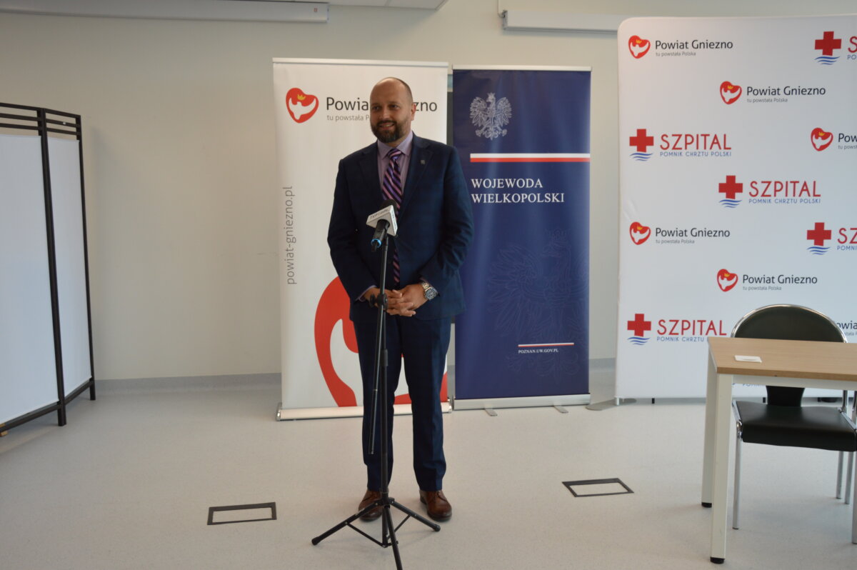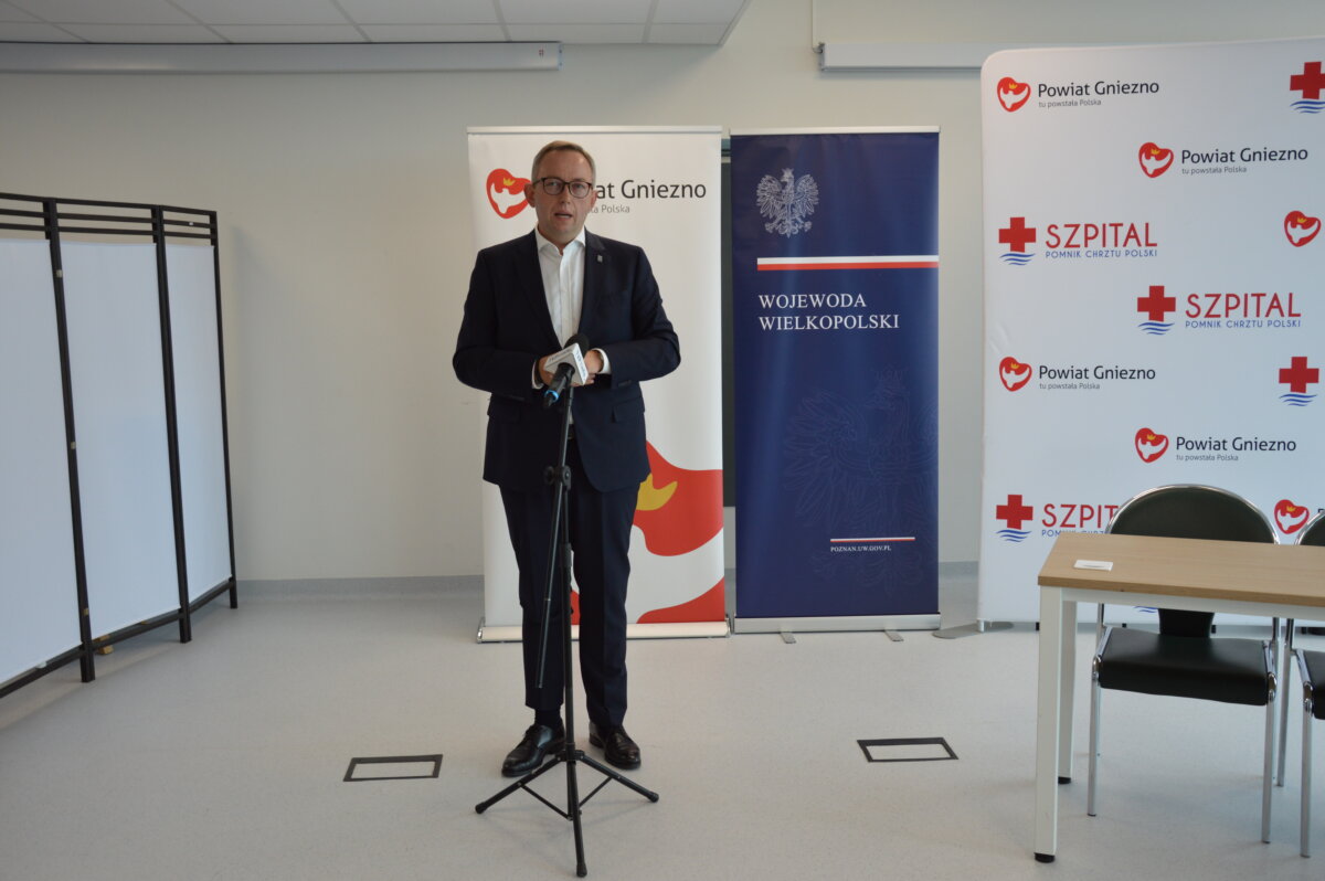 Utworzenie pracowni rezonansu magnetycznego w Szpitalu Pomnik Chrztu Polski w Gnieźnie będzie wydarzeniem bardzo istotnym. Do tej pory gnieźnieńska lecznica taką pracownią nie dysponowała, a pacjenci byli przewożeni lub kierowani do Wojewódzkiego Szpitala dla Nerwowo i Psychicznie Chorych „Dziekanka”. Miesięcznie pacjentom szpitalnym zlecanych jest około 60 badań rezonansu magnetycznego; z poradni szpitalnych, funkcjonujących przy ul. św. Jana, rocznie wydawanych jest około 2 000 skierowań na badania rezonansem. To w sposób oczywisty wydłużało proces diagnostyki, a co za tym idzie: leczenia. – Ta inwestycja, którą dzisiaj w zasadzie rozpoczynamy, jest dla tego szpitala bardzo ważna. O tym, jak ważna, świadczy fakt, że w Wielkopolsce mamy kilka placówek tzw. II stopnia, które są w systemie sieci szpitali. Gniezno jest przedostatnią placówką, która takiego rezonansu w swojej lokalizacji nie ma – mówił Filip Waligóra, dyrektor szpitala. – Dzisiaj mamy historyczną chwilę. Od 2022 roku w strukturze naszego szpitala posiadamy dwa oddziały: oddział udarowy i oddział neurologiczny, dla których rezonans jest podstawowym narzędziem diagnostycznym. Dzisiaj pacjentów wozimy na badania do sąsiedniego szpitala. Ten sprzęt to jest dla nas coś podstawowego – podkreślał, zaznaczając że dzięki pracowni wzrośnie poziom i jakość usług medycznych.