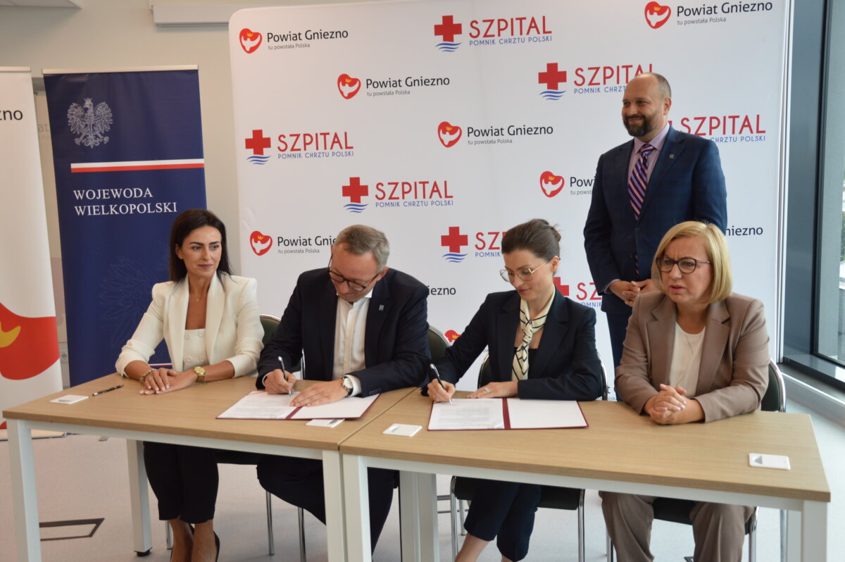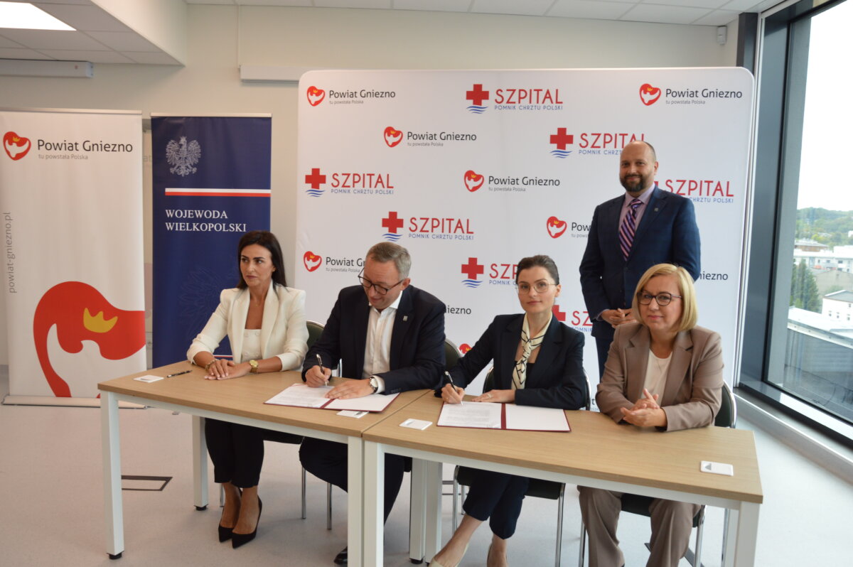 To kolejny poważny krok w kierunku poprawy jakości usług medycznych. W poniedziałek, 25 sierpnia w Szpitalu Pomnik Chrztu Polski w Gnieźnie odbył się breifing prasowy, podczas którego nastąpiło oficjalne podpisanie umowy pomiędzy samorządami województwa wielkopolskiego i powiatu gnieźnieńskiego na dofinansowanie utworzenia pracowni rezonansu magnetycznego w gnieźnieńskiej lecznicy. W spotkaniu udział wzięli m.in. ministra klimatu i środowiska Paulina Hennig – Kloska, senator Grzegorz Fedorowicz, wojewoda wielkopolska Agata Sobczyk, wicestarosta gnieźnieński Łukasz Scheffs oraz dyrektor szpitala Filip Waligóra.