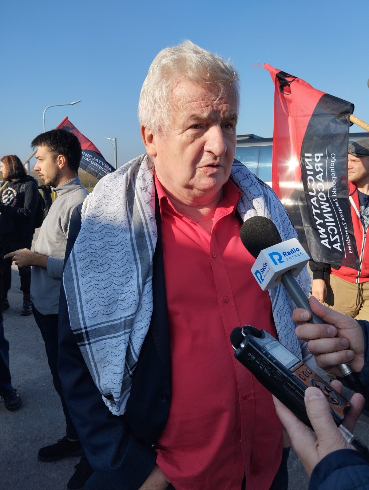 W zebranym przed zakładem Jeremias tłumie można było zauważyć także m.in. posła Tadeusza Tomaszewskiego, który przysłuchiwał się przemówieniom przedstawicieli związkowych, czy Piotra Ikonowicza, działacza politycznego i społecznego, na forum ogólnopolskim znanego z tego, iż niejednokrotnie występował w obronie osób pokrzywdzonych, m.in. eksmitowanych, ale też w obronie godności pracowników. – Problem polega na tym, że za mało zarabiamy i 46% pracujących Polaków cierpi niedostatek, czyli zarabia w przeliczeniu na członka rodziny mniej niż wynosi minimum socjalne. Mamy gigantyczne rozwarstwienie. A jedyny moment, w którym nasza praca jest doceniania, to strajk – mówił Piotr Ikonowicz. – Idea związków zawodowych jest oparta o dialog społeczny, a mamy firmy, które profesjonalnie zajmują się utrącaniem owego dialogu społecznego. Dlatego też trzeba wymyślić takie nowelizacje prawa, które tego typu praktyki ukrócą. Żeby był dialog, a nie po prostu walka na wyniszczenie – podkreślał.