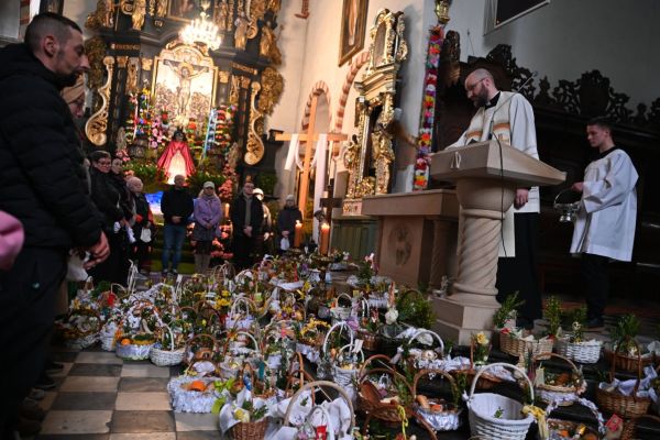 Wielka Sobota w Strzelnie upływa pod znakiem modlitwy, ciszy i głęboko zakorzenionych zwyczajów. Od wczesnego poranka wierni odwiedzają bazylikę, by czuwać przy Grobie Pańskim i przynieść do poświęcenia wielkanocne koszyczki, które zgodnie z lokalną tradycją ustawiane są u stóp ołtarza.