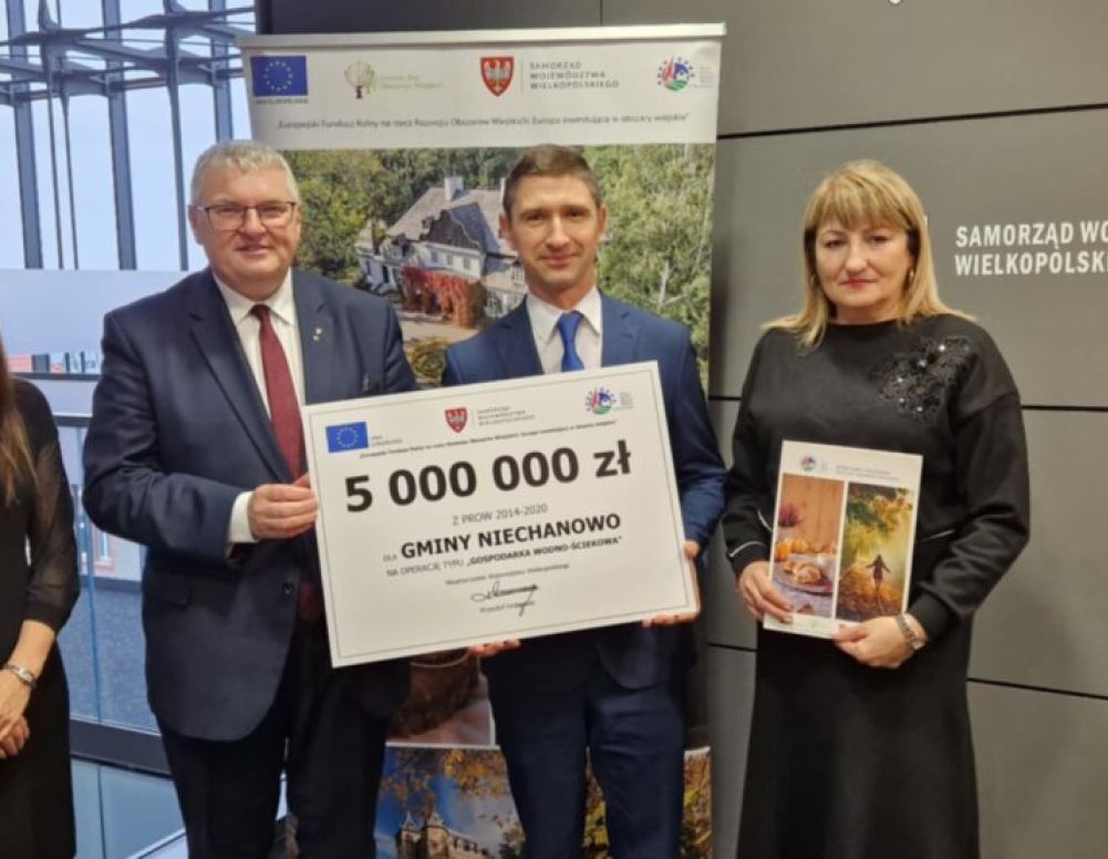 Umowa, dotycząca przyznania środków, pochodzących z Europejskiego Funduszu Rolnego na rzecz Rozwoju Obszarów Wiejskich w ramach Programu Rozwoju Obszarów Wiejskich na lata 2014-2020, została podpisana piątek, 10 stycznia, pomiędzy Szymonem Robaszkiewiczem, wójtem gminy Niechanowo i Emilią Błaszkowską, gminnym skarbnikiem, a Krzysztofem Grabowskim, wicemarszałkiem województwa wielkopolskiego. Co ważne, kwota dotacji wynosi 5 milionów złotych, co stanowi 100% kosztów kwalifikowanych.