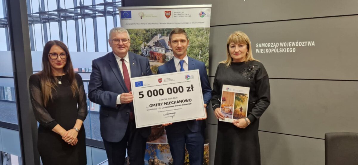 Umowa, dotycząca przyznania środków, pochodzących z Europejskiego Funduszu Rolnego na rzecz Rozwoju Obszarów Wiejskich w ramach Programu Rozwoju Obszarów Wiejskich na lata 2014-2020, została podpisana piątek, 10 stycznia, pomiędzy Szymonem Robaszkiewiczem, wójtem gminy Niechanowo i Emilią Błaszkowską, gminnym skarbnikiem, a Krzysztofem Grabowskim, wicemarszałkiem województwa wielkopolskiego. Co ważne, kwota dotacji wynosi 5 milionów złotych, co stanowi 100% kosztów kwalifikowanych.
