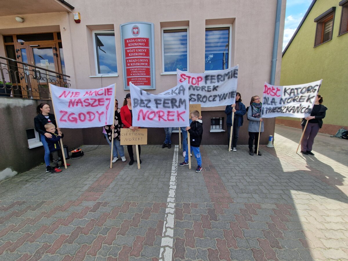 Na zapowiadany od kilku dni protest przed Urzędem Gminy w Kiszkowie przybyło kilkudziesięciu mieszkańców Sroczyna, ale nie tylko. Wsparli ich mieszkańcy innych wsi i wolontariusze stowarzyszenia Otwarte Klatki. Pikietowali oni z transparentami „Zamknijcie fermy. Nie oczy”, „Chcemy oddychać, nie wdychać!”, „Dość katorgi dla norek i mieszkańców”. Relacje były przejmujące. – Te kilka lat bez norek i świadomość, że one teraz wrócą, jeszcze mocniej nas zmotywowały do dalszych działań. Spotykamy się pod urzędem nie dlatego, że mamy jakieś pretensje do władz gminy, tylko po to, by znaleźć wsparcie w naszej walce. Kiedyś o czyste powietrze walczyli dla nas nasi rodzice. Teraz my musimy walczyć dla nich i naszych dzieci. Smród w skali od 1 do 10, wynosi u nas 15! Roje much, a właściciel twierdzi, że każda kontrola wykazywała, że jest wszystko dobrze. Jesteśmy bezradni i bezsilni. W dodatku ferma jest blisko zabudowań wsi – nie kryje oburzenia Radosław Sawicki, mieszkaniec Sroczyna. Jak dodaje, mieszkańcy mają świadomość, że gmina ma związane teraz ręce, dlatego chcą nagłośnić sprawę i dotrzeć „wyżej” – do Sejmu, Senatu, by ustawowo pomóc im i dziesiątkom innych społeczności wiejskich żyjących obok takich ferm. Jak mówią mieszkańcy, do fermy wracają pracownicy, zaczyna się podścielanie pod klatki, a właściciel fermy złożył wniosek do weterynarii. – To nie tylko nasz problem, ale też okolic Czerniejewa. W Europie wchodzą zakazy takiej hodowli, a u nas wszystko stoi do góry nogami – rozkłada bezradnie ręce R. Sawicki. Jak dodaje, smród, roje much to jedno, ale norki uciekają z fermy. – Leżały porozjeżdżane na drogach, atakowały kurniki we wsi, umierały pokątnie osłabione na wolności – wspomina nie tak dawne sytuacje. – Nikt z nami nie rozmawiał. Jeden z poprzednich wójtów podpisał papiery i zakończył kadencję, a my się teraz męczymy z jego decyzjami.