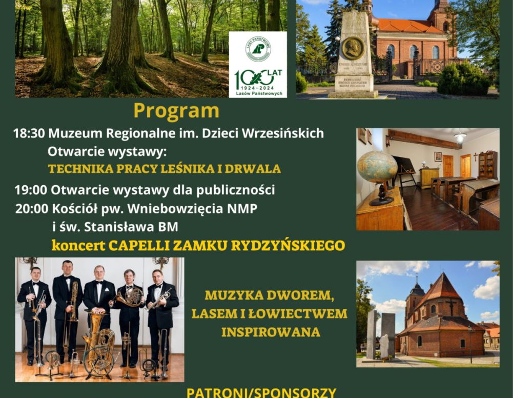 W programie wydarzenia Otwarcie wystawy pt. „Technika pracy leśnika i drwala”, które nastąpi o godz. 19.00 (o godz. 18.30 otwarcie dla zaproszonych gości) w Muzeum Regionalnym im. Dzieci Wrzesińskich we Wrześni, z siedzibą przy ul. Dzieci Wrzesińskich 13, 62-300 Września. Następnie wszystkich zainteresowanych serdecznie zapraszamy na koncert Capelli Zamku Rydzyńskiego rozpoczynający się o godz. 20.00 w kościele pw. Wniebowzięcia NMP i św. Stanisława BM, znajdującego się przy ul. Kościelnej 7, 62-300 Września.