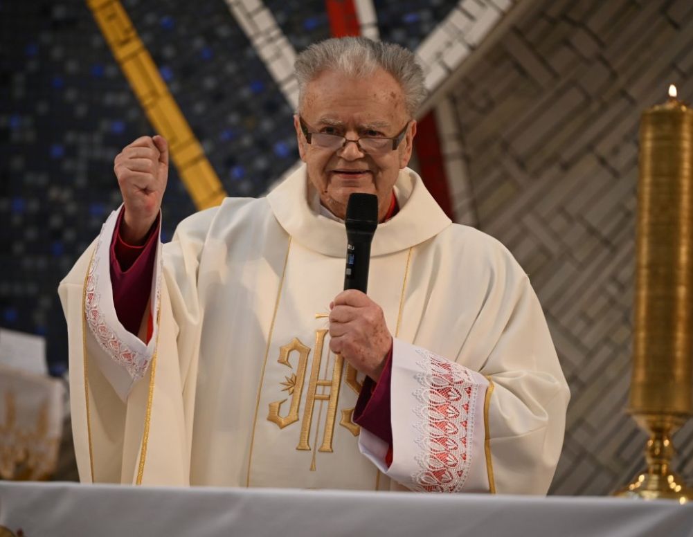 Natomiast podczas jubileuszowej eucharystii ks. jubilat mówił, jak bardzo jest wzruszony, podziękował wszystkim za pamięć i pomoc, jaką okazywali mu mieszkańcy miasta, kolejne władze podczas jego posługi w Mogilnie. Podziękował także za wszystko oraz zawierzył dalsze swoje życie ukochanej Matce Bożej Nieustającej Pomocy. Podczas mszy św. poprosił ks. biskupa o poświęcenie krzyży, którymi obdarował obecnego proboszcza mogileńskiej parafii MBNP ks. Pawła Lewandowskiego i wikariusza parafii ks. Michała Szalatego.