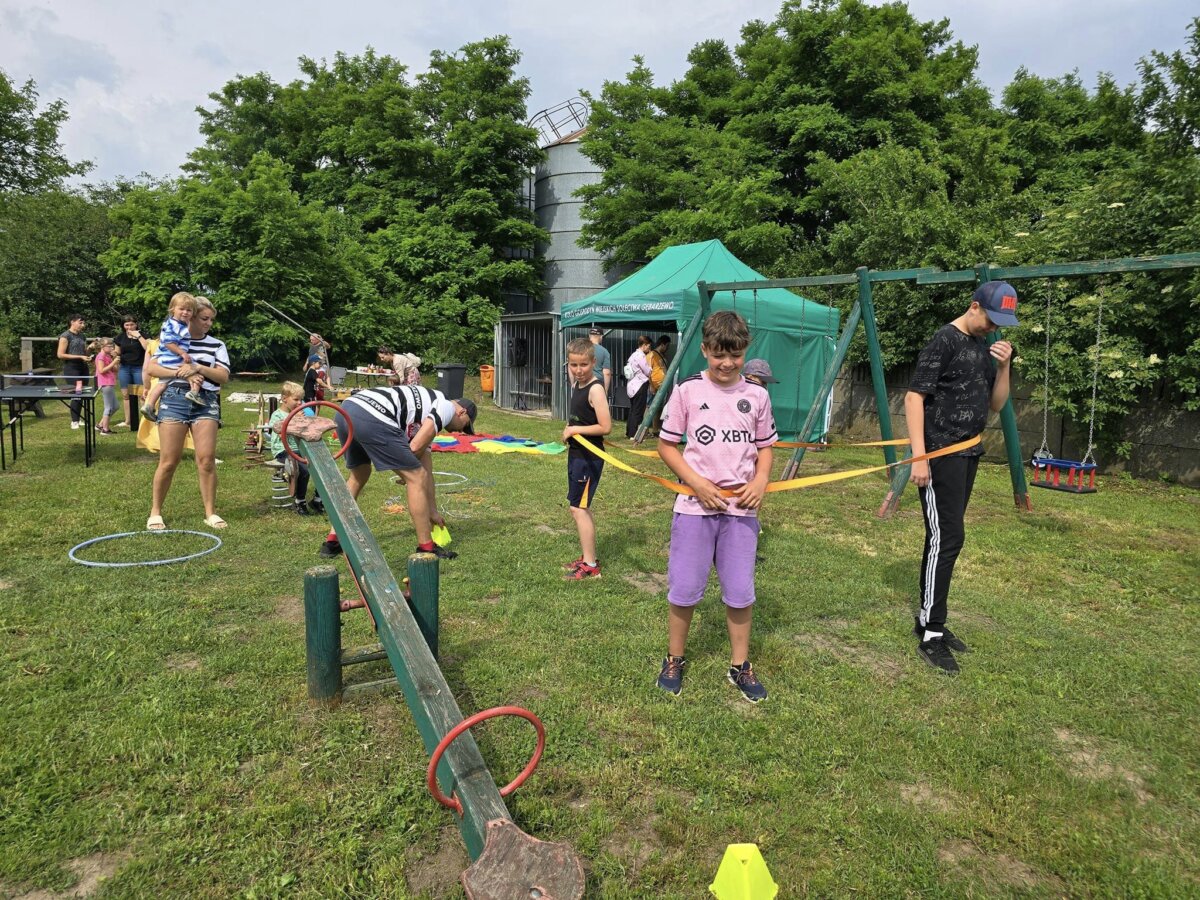 Dzieci mogły wziąć udział w różnego rodzaju grach i zabawach. Przeciąganie liny, zaplanowane wstępnie jako konkurencja dla najmłodszych, ku uciesze wszystkich uczestników przerodziło się w zawody dla starszych i tu nie brakowało emocji. Nie zabrakło też stricte festynowych atrakcji, takich jak cieszące się nieustannym zainteresowaniem dmuchańce – zamek i bramka do piłki nożnej, a także malowania twarzy.