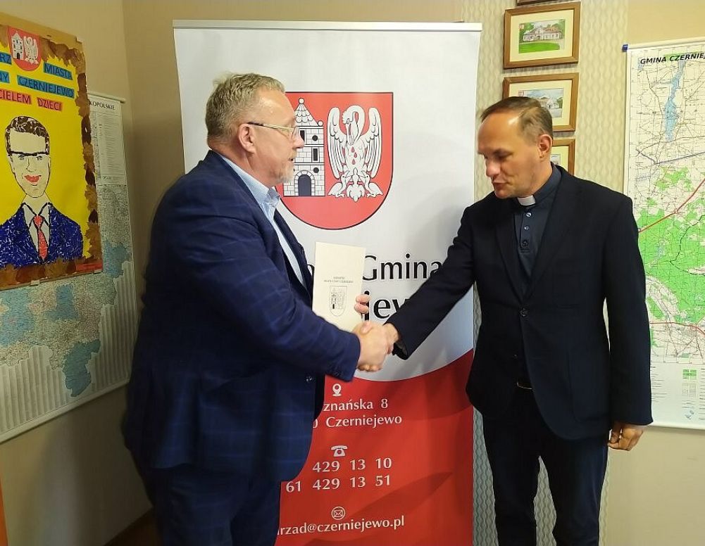 Umowa w sprawie przyznanej dotacji została podpisana pomiędzy Tadeuszem Szymankiem, burmistrzem Miasta i Gminy Czerniejewo a ks. Radosławem Plewą, proboszczem parafii w Pawłowie, w poniedziałek, 26 sierpnia w czerniejewskim urzędzie.