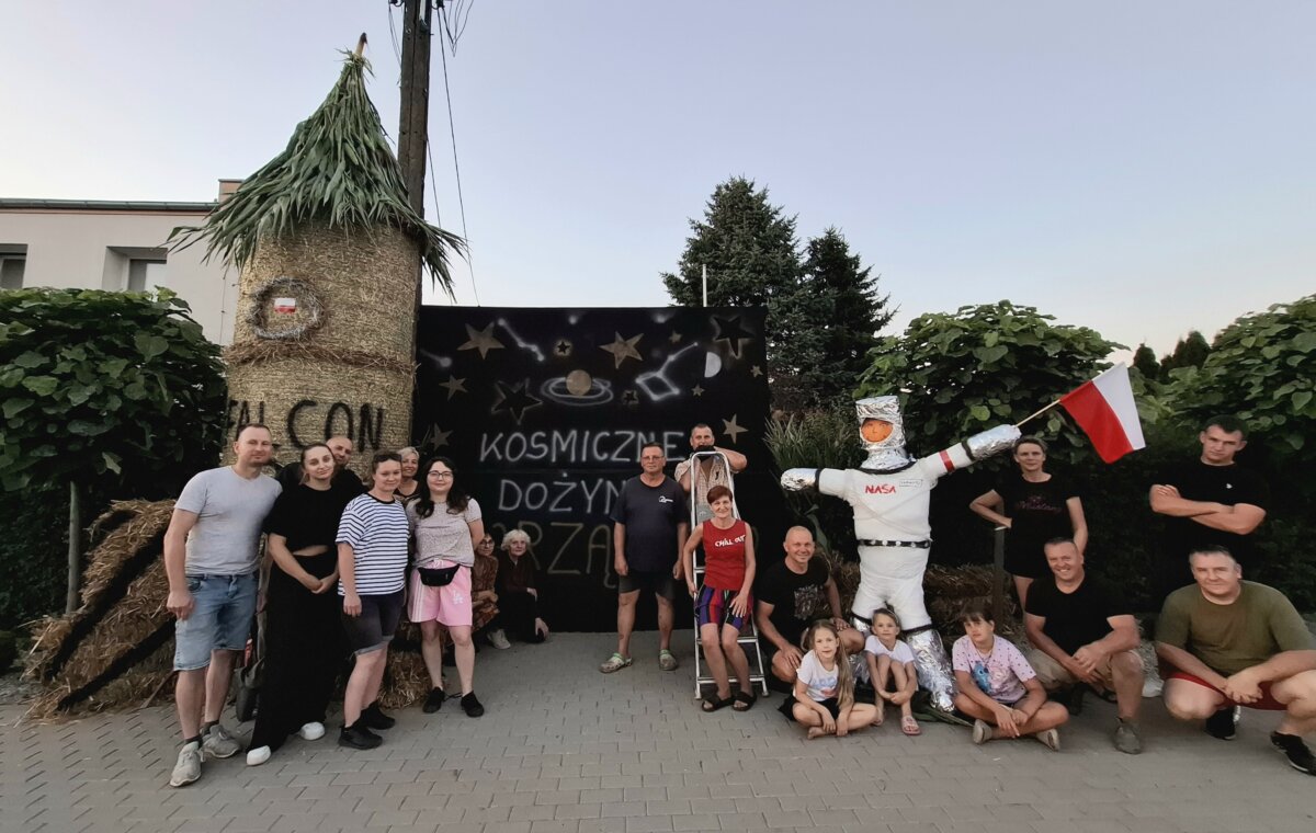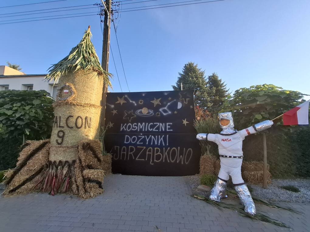 W tym roku mieszkańcy wioski nawiązali do niewątpliwie historycznego wyczynu jakim był udział astronauty Sławosza Uznańskiego – Wiśniewskiego, drugiego Polaka, który znalazł się w przestrzeni kosmicznej i jako pierwszy uczestniczący w misji polegającej na locie na Międzynarodową Stację Kosmiczną. – Stworzyliśmy kosmiczną dekorację dożynkową. Nie mogło zabraknąć głównego bohatera, czyli astronauty ze słomy w charakterystycznym kombinezonie oraz rakiety, która wyniosła wszystkich uczestników wyprawy w kosmos – dodaje Krystian Rynarzewski.
