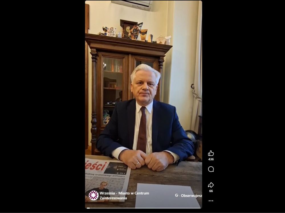 „Dzień dobry, witam państwa wszystkich bardzo serdecznie. W zasadzie, to moje pierwsze publiczne wystąpienie jako burmistrza od czasu zawieszenia mnie w pełnieniu funkcji” – powiedział w opublikowanym w środę 12 listopada nagraniu Tomasz Kałużny, przez ostatnie 2 lata zawieszony w swoich obowiązkach włodarz Wrześni. Mimo trwającego procesu sądowego w którym burmistrz jest jednym z oskarżonych o czyny korupcyjne, sankcja nie pozwalająca mu realizować mandatu wyborczego została uchylona.