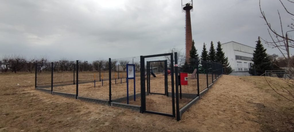 Nowy wybieg jest ogrodzony i wyposażony w śluzy wejściowe, co pozwoli psom swobodnie biegać bez smyczy, przy zachowaniu pełnego bezpieczeństwa. Na terenie parku znalazły się urządzenia do psiej aktywności, m.in. pochylnia, tunel, slalom, rampa, obręcze i drążek. Dla opiekunów zainstalowano ławki, kosze na śmieci i psie odchody oraz tablicę z regulaminem. Dojście do wybiegu zostało wykonane z kostki brukowej, a cały teren wyrównany.
