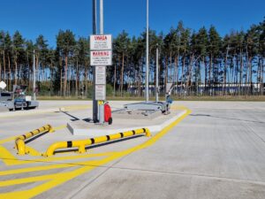Duży Magazyn Paliw (ang. Large Bulk Fuel Storage and Distribution Facility), to najnowsza inwestycja w 33 Bazie Lotnictwa Transportowego w Powidzu. Zmiany, jakie zaszły w tym miejscu w ostatnich latach już robią ogromne wrażenie, ale baza cały czas się modernizuje i rozbudowuje. Dowodem tego jest oddany właśnie do użytku skład paliw. Inwestycja powstała w ramach realizacji umowy między Rządem Rzeczypospolitej Polskiej a Rządem Stanów Zjednoczonych Ameryki o wzmocnionej współpracy obronnej, z dnia 15 sierpnia 2020 roku, zwanej umową EDCA. Budowa została zrealizowana przez Agencję Mienia Wojskowego, inwestora wojskowego wyznaczonego do realizacji tego zadania, w latach: 2022 – 2025. Wspomniane wcześniej 115 inwestycji w ramach umowy, rozproszone jest w 12 lokalizacjach w kraju, w tym w Powidzu. – Ten zrealizowany właśnie projekt zbiorników paliw na potrzeby armii amerykańskiej daje ogromne możliwości logistyczne – mówi gen. dyw. Dariusz Mendrala, Szef Inspektoratu Wsparcia Sił Zbrojnych. Jak wylicza – schowane częściowo pod ziemią zbiorniki mieszczą 6000 m3 paliwa. – To paliwo wspierać będzie możliwości operacyjne wojsk lądowych armii amerykańskiej – dodaje. Niedaleko zbiorników funkcjonują już od jakiegoś czasu magazyny wysokiej mobilności kryjące sprzęt całej brygady pancernej. – Ten sprzęt jest tutaj na potrzeby szybkiego uruchomienia procedury wsparcia polskiego bezpieczeństwa, zawsze, kiedy będzie to konieczne. Brygadowa grupa bojowa będzie w stanie bardzo szybko osiągnąć zdolność operacyjną, między innymi dzięki temu, że tutaj będzie zgromadzone paliwo – wskazuje generał na sąsiednie obiekty.