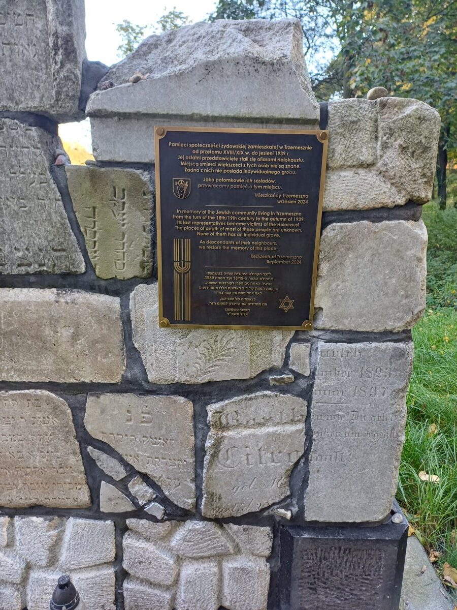 „Jako potomkowie ich sąsiadów, przywracamy pamięć o tym miejscu” – głosi zapis na tablicy, sygnowany przez mieszkańców Trzemeszna.