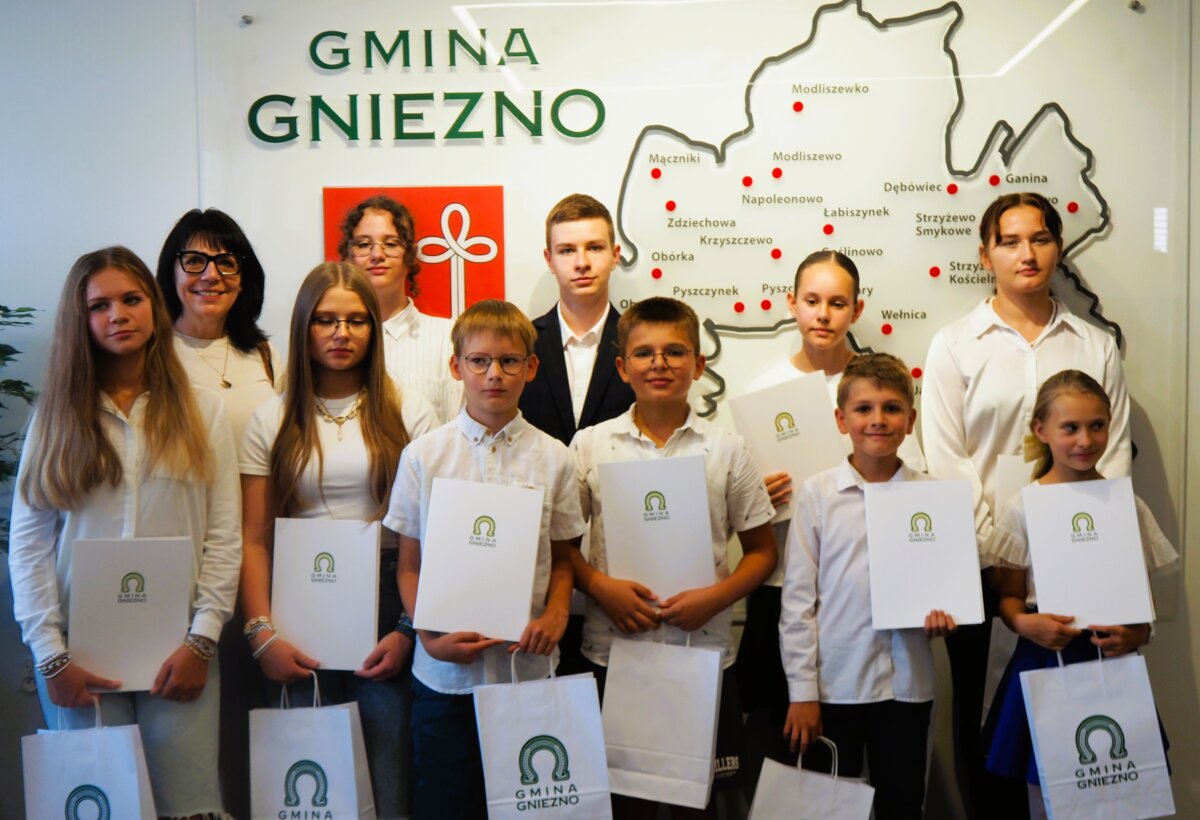Stypendia i nagrody dla uzdolnionej młodzieży, uczącej się w gminnych placówkach oświatowych – tj. w szkołach podstawowych w Goślinowie, Jankowie Dolnym, Szczytnikach Duchownych i Zdziechowie – wręczyła Maria Suplicka, wójt gminy Gniezno. – Chcemy nagrodzić uczniów gminnych szkół podstawowych, którzy wyróżniali się wyjątkowymi zdolnościami i wyjątkową pracowitością w minionym roku szkolnym, a także aktywnością w życiu szkoły. Są to osoby, które faktycznie zasłużyły na to, aby dodatkowo, motywacyjnie wynagrodzić ich pracę w minionym roku szkolnym – mówiła wójt Maria Suplicka. Za swoją pracę w roku szkolnym 2023/2024 stypendia odebrało jedenaścioro uczniów, którzy otrzymali na świadectwie najwyższe wyniki w nauce, ale też np. wyróżniali się, zdobywając osiągnięcia sportowe. Otrzymane stypendium w wysokości 200 zł miesięcznie będzie wypłacane do końca bieżącego roku szkolnego.