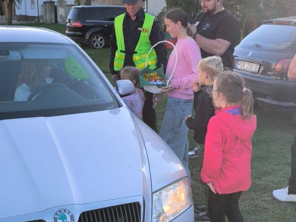 Na straży dobrego humoru i przepisowej jazdy stanęli nie tylko najmłodsi, ale również dorośli i dzielnicowy z Komisariatu Policji w Czerniejewie. Kierowcy, którzy przestrzegali ograniczeń prędkości, byli nagradzani balonikami, słodkimi upominkami i – co najważniejsze – szczerymi uśmiechami dzieci. Ci, którzy jechali zbyt szybko, otrzymywali pouczenia od funkcjonariusza, przypominające o tym, że bezpieczeństwo zaczyna się od odpowiedzialności.