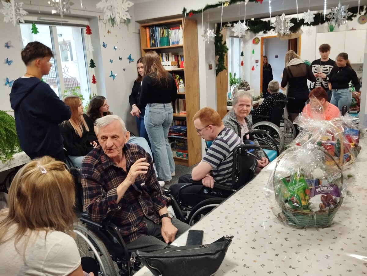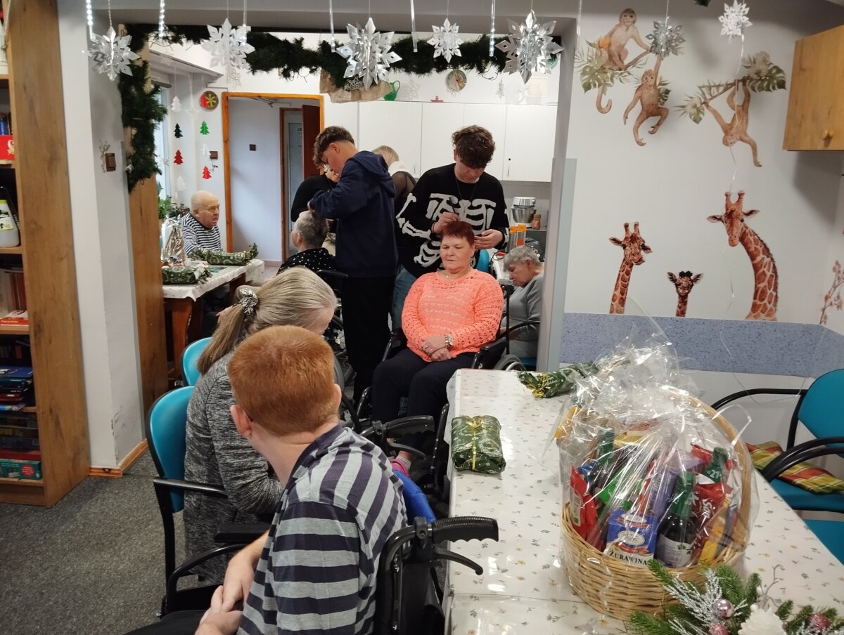W ramach spotkania, które odbyło się 17 grudnia, przyszli fryzjerzy zaproponowali chętnym paniom „chwilę dla siebie” w postaci uczesania i wykonania wymarzonej fryzury. A ponieważ te niecodzienne odwiedziny przypadły na czas krótko poprzedzający święta Bożego Narodzenia, w trakcie spotkania odczytane zostały fragmenty „Opowieści wigilijnej” Karola Dickensa, zaśpiewano kilka świątecznych piosenek, oddano się także wspólnym rozmowom. Na koniec na seniorów czekała niespodzianka – panie otrzymały eleganckie szale, podkreślające ich kobiecość, natomiast dla wszystkich podopiecznych gnieźnieńskiego Domu Pomocy Społecznej uczniowie CSR przygotowali kosze z łakociami i drobne upominki.