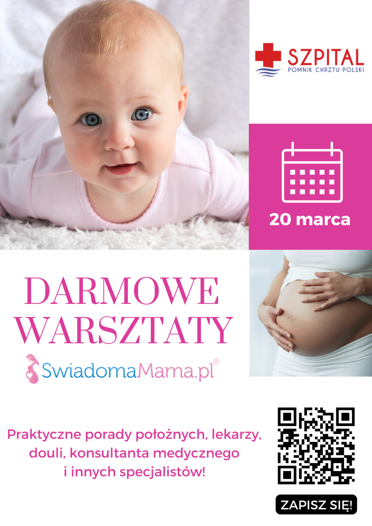 Niebawem na świecie pojawi się Twój maluszek? Weź udział w spotkaniu z ekspertami, którzy przygotują Cię do rodzicielstwa! Szpital Pomnik Chrztu Polski oraz SwiadomaMama.pl zapraszają!