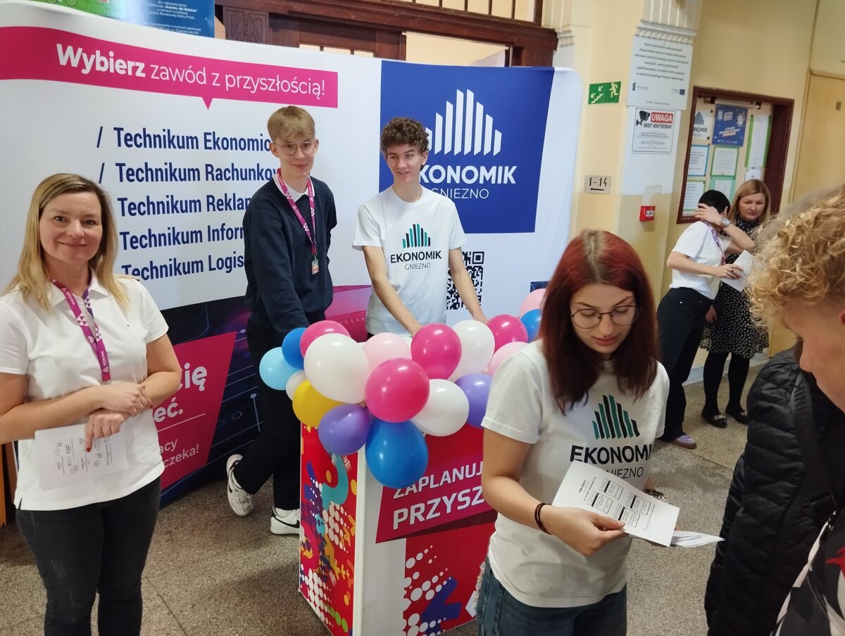 W sobotę, 15 marca w Zespole Szkół Ekonomicznych w Gnieźnie odbyły się Drzwi Otwarte, w trakcie których uczniowie przyszłych klas pierwszych wraz z rodzicami mieli okazję zapoznać się z ofertą edukacyjną szkoły, poznać jej bazę dydaktyczną, a także wziąć udział w tzw. lekcjach pokazowych.