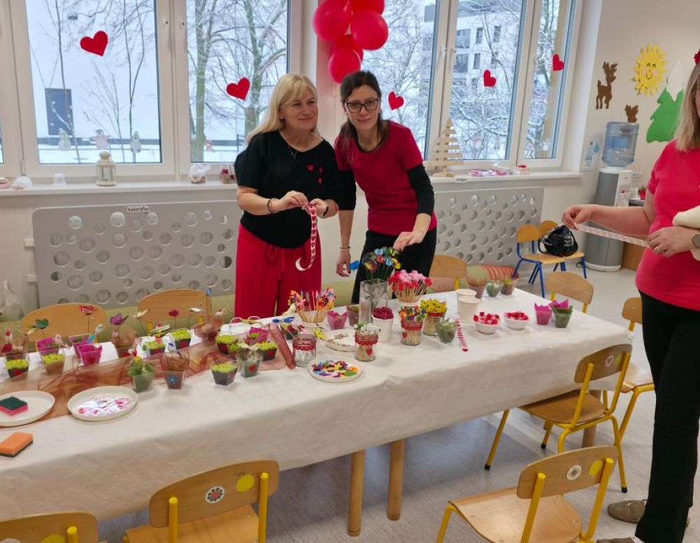 Pierwsze Drzwi Otwarte odbyły się 14 lutego, w wyjątkowej, walentynkowej atmosferze. Na dzieci czekało wiele atrakcji przygotowanych przez nauczycieli oraz pracowników przedszkola. Różnorodne aktywności pozwalały najmłodszym rozwijać kreatywność, wyobraźnię oraz zdolności manualne. Dzieci mogły spróbować swoich sił w majsterkowaniu oraz pracach plastycznych, wykonując m.in. kolorowe kwiatuszki i motylki. Dużym zainteresowaniem cieszyły się także aktywności kulinarne i sensoryczne. W specjalnie przygotowanym kąciku kulinarnym najmłodsi mogli samodzielnie dekorować gofry świeżymi owocami. Na uczestników wydarzenia czekały również zdrowe i smaczne przekąski – sałatki oraz kanapki przygotowane przez panie pracujące w przedszkolnej kuchni, promujące zdrowe nawyki żywieniowe. Nie zabrakło także atrakcji muzycznych – dzieci mogły spróbować gry na instrumentach, takich jak dzwonki czy bęben, a także wziąć udział w ciekawych eksperymentach, m.in. w tworzeniu sztucznego śniegu. W czasie spotkania zaprezentowano również elementy pracy z wykorzystaniem metody Froebla, na której opiera się codzienna działalność przedszkola. Metoda ta rozwija samodzielność, kreatywność oraz naturalną ciekawość świata u dzieci.