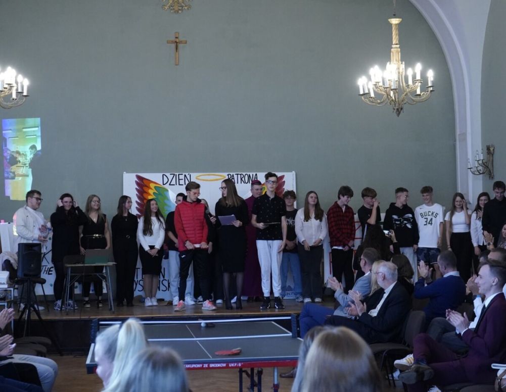 Finałem obchodów Dnia Patrona było przedstawienie. Uczniowie w składzie: A. Kozanecka, B. Tomczak, N. Stranz, M. Wośkowiak, V. Kondela, D. Pieczyńska, N. Dikhtiarenko, W. Drzewiecka, N. Dziel, M. Guziałek, O. Jędrzejcza, J. Kamyszek, K. Karcz, Z. Kloska, J. Kowalska, G. Krzysztofiak, N. Liberski, B. Makowska, W. Malerowicz, I. Markiewicz, N. Mikuła, W. Pasiowiec, A. Przybylski, W. Przybył, N. Schneider, W. Sporna, Sz. Wociński, A. Starzyńska O. Rosiak, O. Skrzeczkowski, O. Stefański, pokazali postać Stefana Wyszyńskiego z perspektywy zwykłego człowieka. W końcu nawet Prymas Tysiąclecia dostawał w szkole jedynki i nie zawsze dogadywał się z nauczycielami. Został nawet wyrzucony ze szkoły – czego jednak nikomu nie życzymy! Tak więc podążajcie śladami swojego wybitnego Patrona – uczniowie Ekonomika – ale z umiarem!