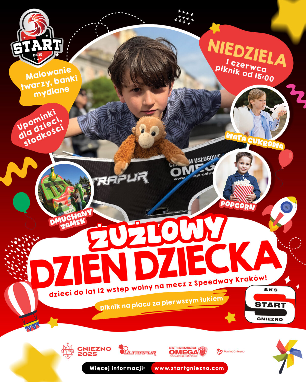 Oprócz atrakcji dla dzieci, głównym punktem niedzielnego popołudnia na stadionie przy #W25 będzie mecz Ultrapur Start Gniezno kontra Speedway Kraków – pojedynek stolic rozpocznie się o godzinie 17. Emocje na żywo tylko z perspektywy trybun! Ważna informacja dla rodzin: dzieci do lat 12. mają wstęp na mecz ze Speedway Kraków zupełnie za darmo! To świetna szansa, by razem z pociechami przeżyć sportowe emocje na żywo i dopingować czerwono-czarnych w walce o kolejne punkty do tabeli Krajowej Ligi Żużlowej.
