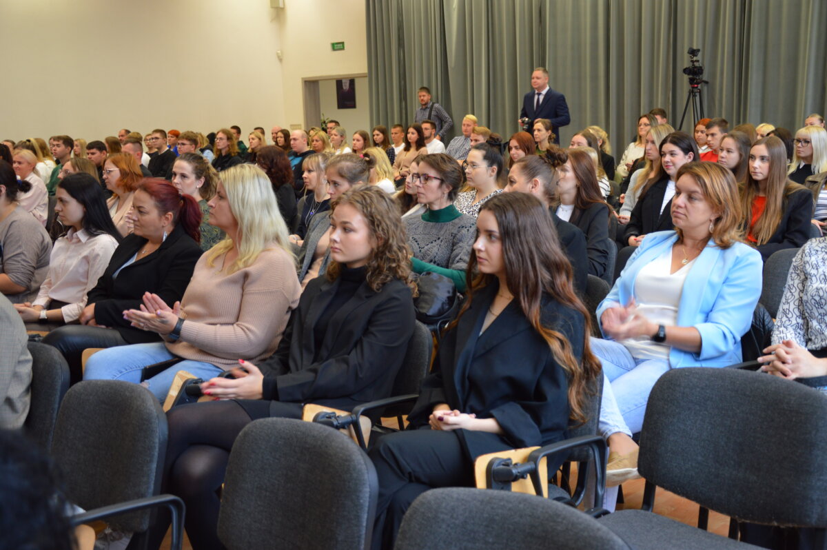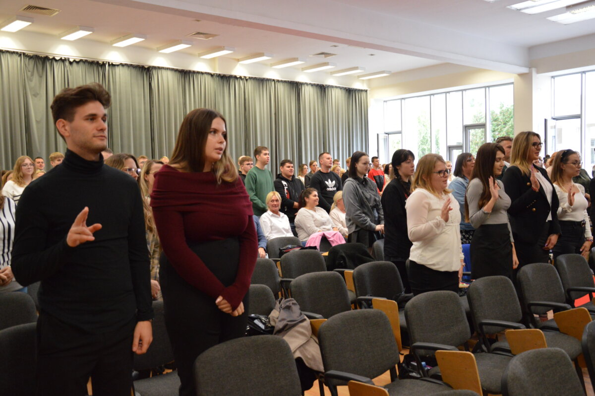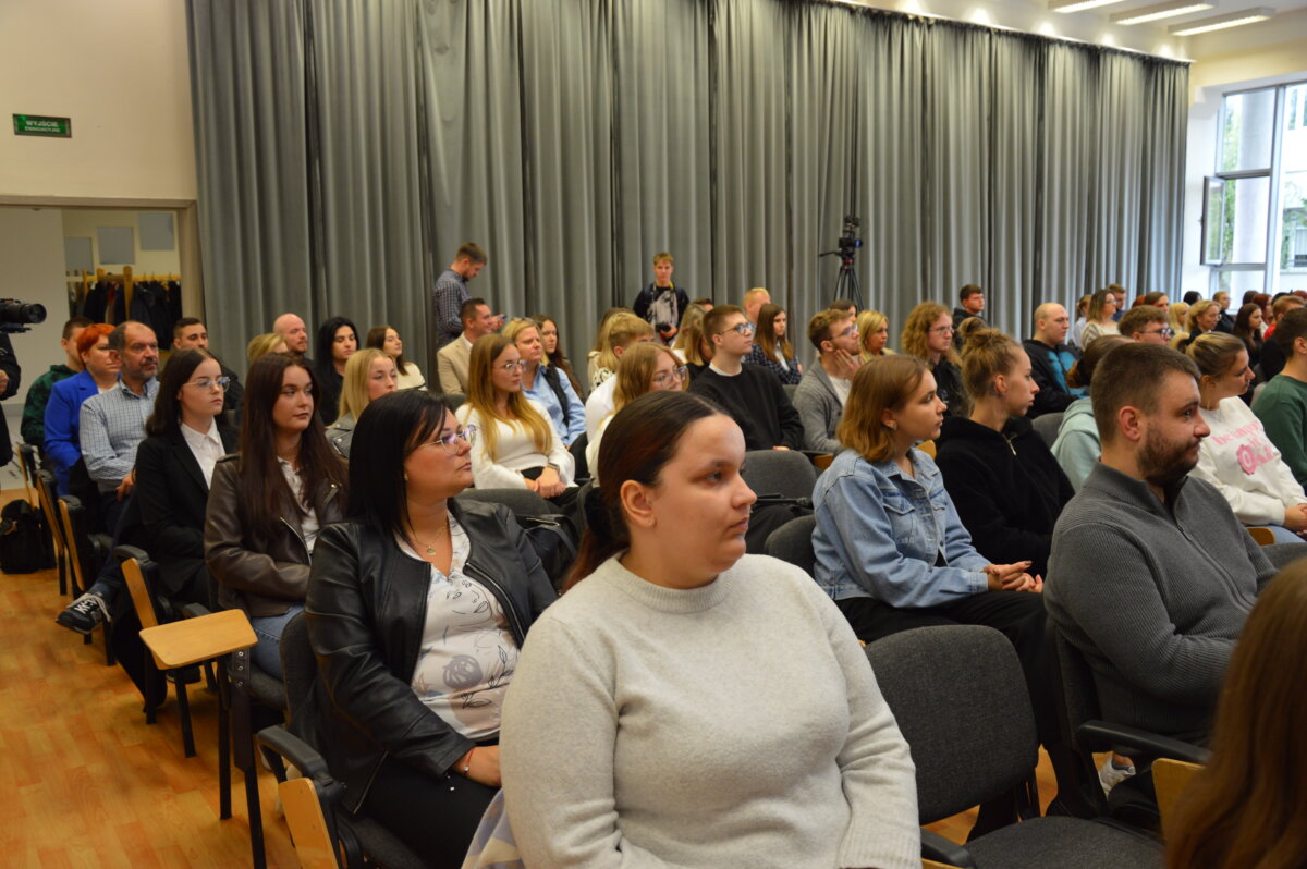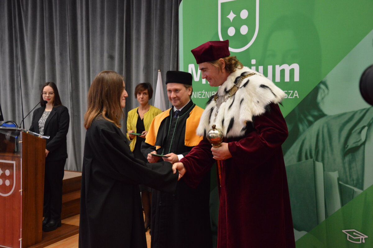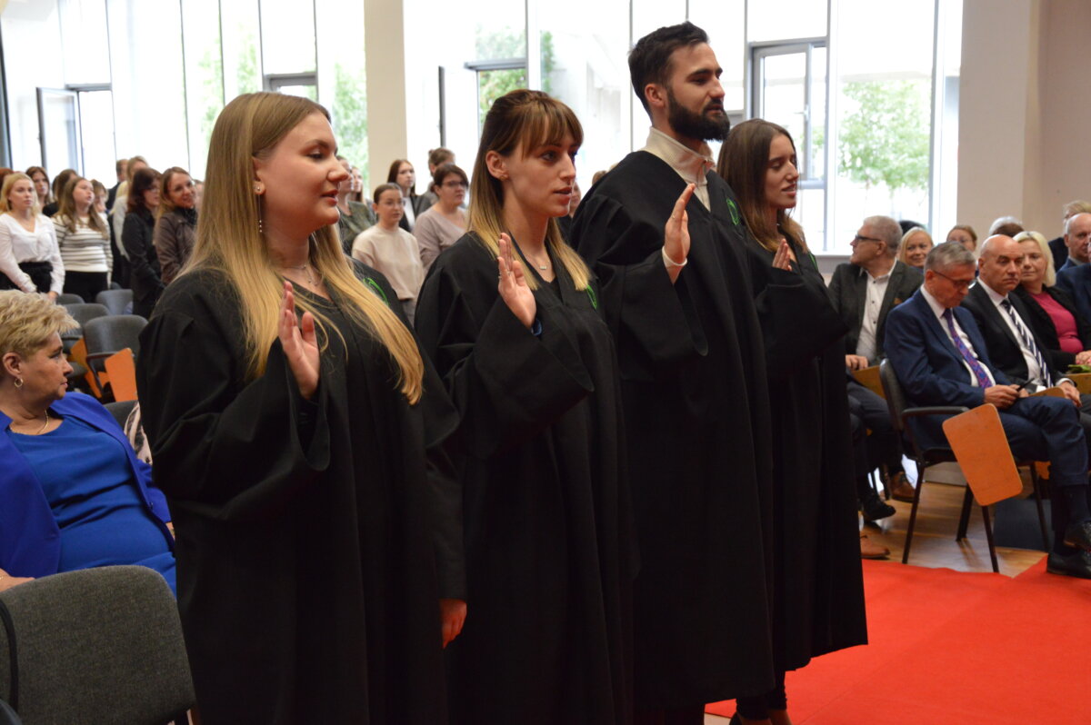Po oficjalnym rozpoczęciu roku akademickiego 2024/2025 dr Tomasz Albiński, dziekan Wydziału Nauk Społecznych w GSW Milenium przyjął ślubowanie studentów pierwszego roku I stopnia kierunków: pedagogika przedszkolna i wczesnoszkolna, pedagogika i zarządzanie oraz pierwszego roku II stopnia kierunku: zarządzanie, po czym przedstawicielom poszczególnych kierunków wręczone zostały e – indeksy. Następnie głos mogli zabrać zaproszeni goście, towarzyszący tego dnia społeczności akademickiej GSW Milenium. Zwieńczeniem spotkania stała się część poświęcona na inauguracyjny wykład.