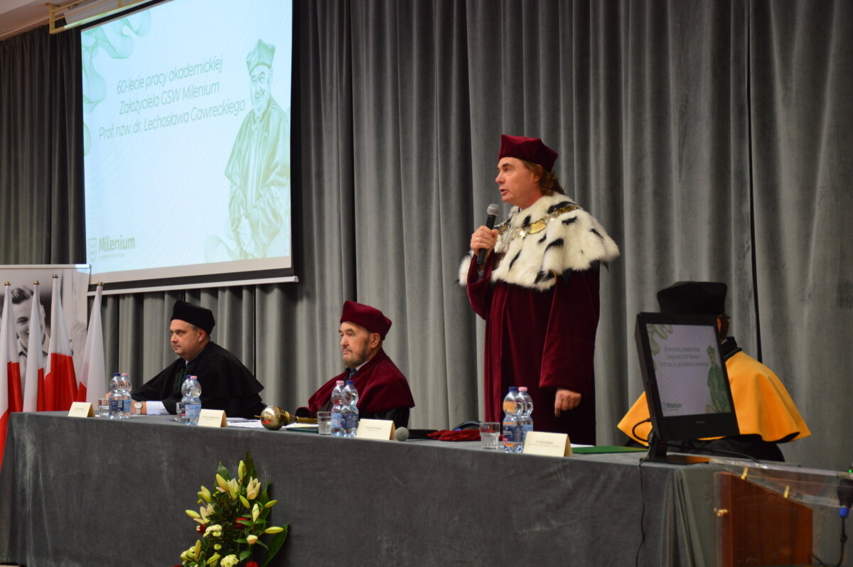 Wyjątkowy charakter przybrała inauguracja kolejnego roku akademickiego w Gnieźnieńskiej Szkole Wyższej Milenium, która odbyła się w minioną sobotę, 5 października. Uroczystość połączona została z obchodzonym w tym roku przez prof. nzw. dra Lechosława Gawreckiego – założyciela GSW Milenium, 60 – leciem pracy akademickiej.