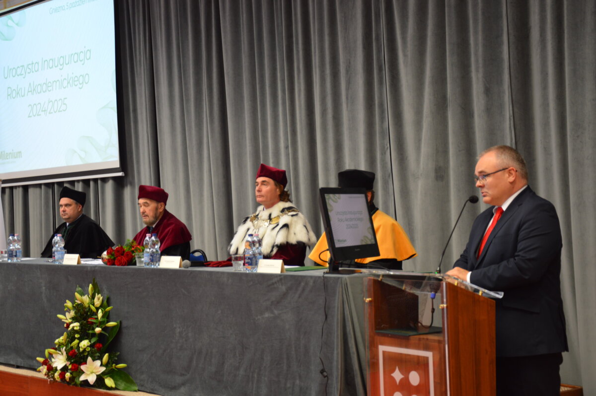 Uroczystość, inaugurującą kolejny już, dwudziesty trzeci rok, działalności Gnieźnieńskiej Szkoły Wyższej Milenium rozpoczął sam jej założyciel – prof. nzw. dr Lechosław Gawrecki, witając wszystkich tych, którzy w tym dniu postanowili towarzyszyć społeczności akademickiej. Wśród zaproszonych gości obecni byli m.in. poseł Tadeusz Tomaszewski i przedstawiciele senatora Grzegorza Fedorowicza oraz ministry Pauliny Hennig – Kloski, Radosław Sobkowiak – członek Zarządu Powiatu Gnieźnieńskiego i Dariusz Pilak – przewodniczący Rady Powiatu Gnieźnieńskiego, Łukasz Muciok – zastępca prezydenta Miasta Gniezna, Zdzisław Kujawa – przewodniczący Rady Miasta Gniezna, Justyna Michalska – wiceburmistrz Miasta Wągrowiec, a także przedstawiciele zaprzyjaźnionych placówek oświatowych, instytucji, zakładów pracy, organizacji i stowarzyszeń.
