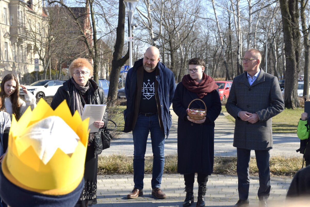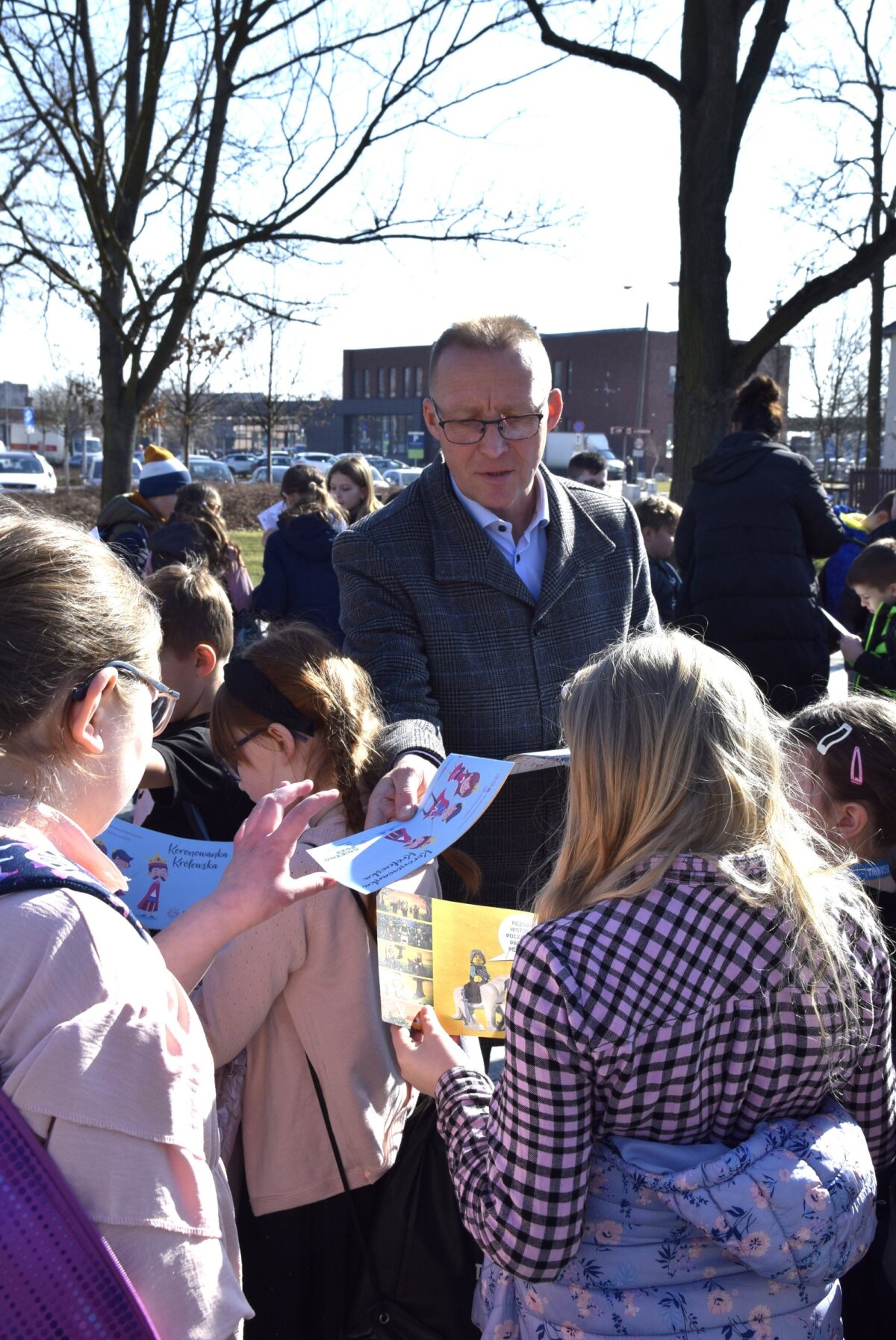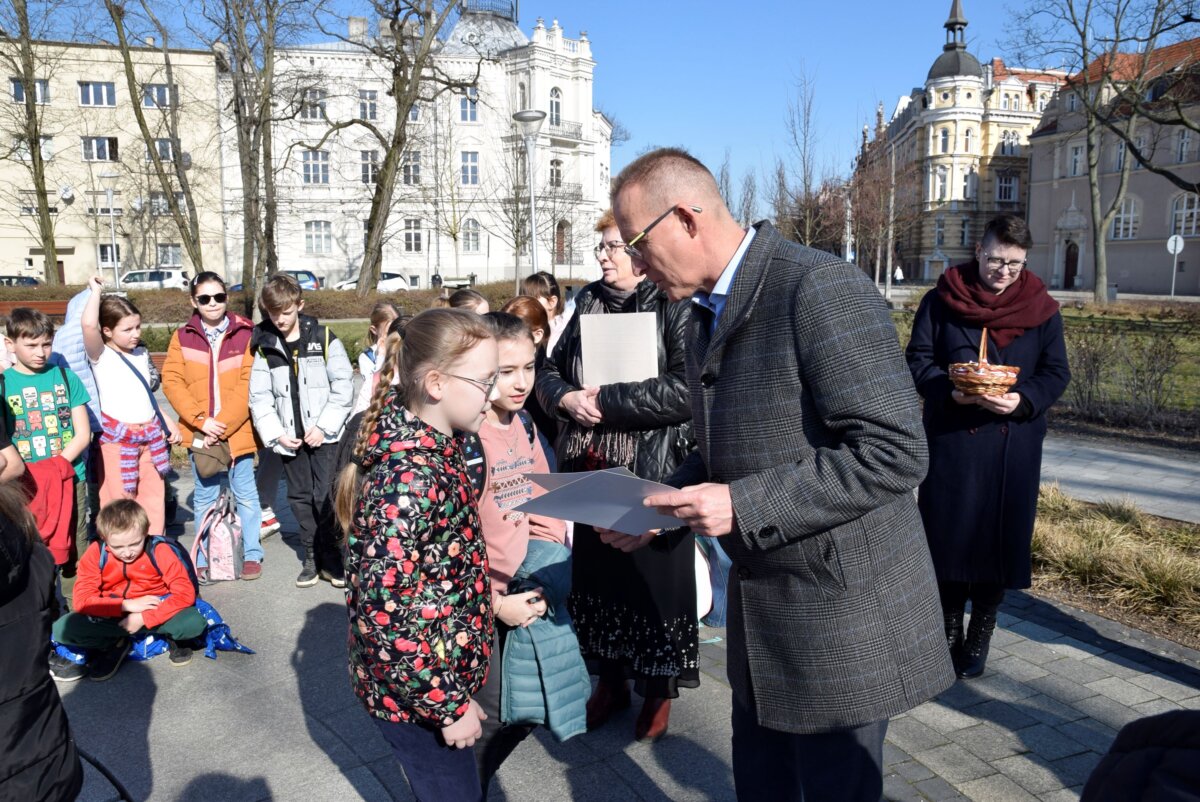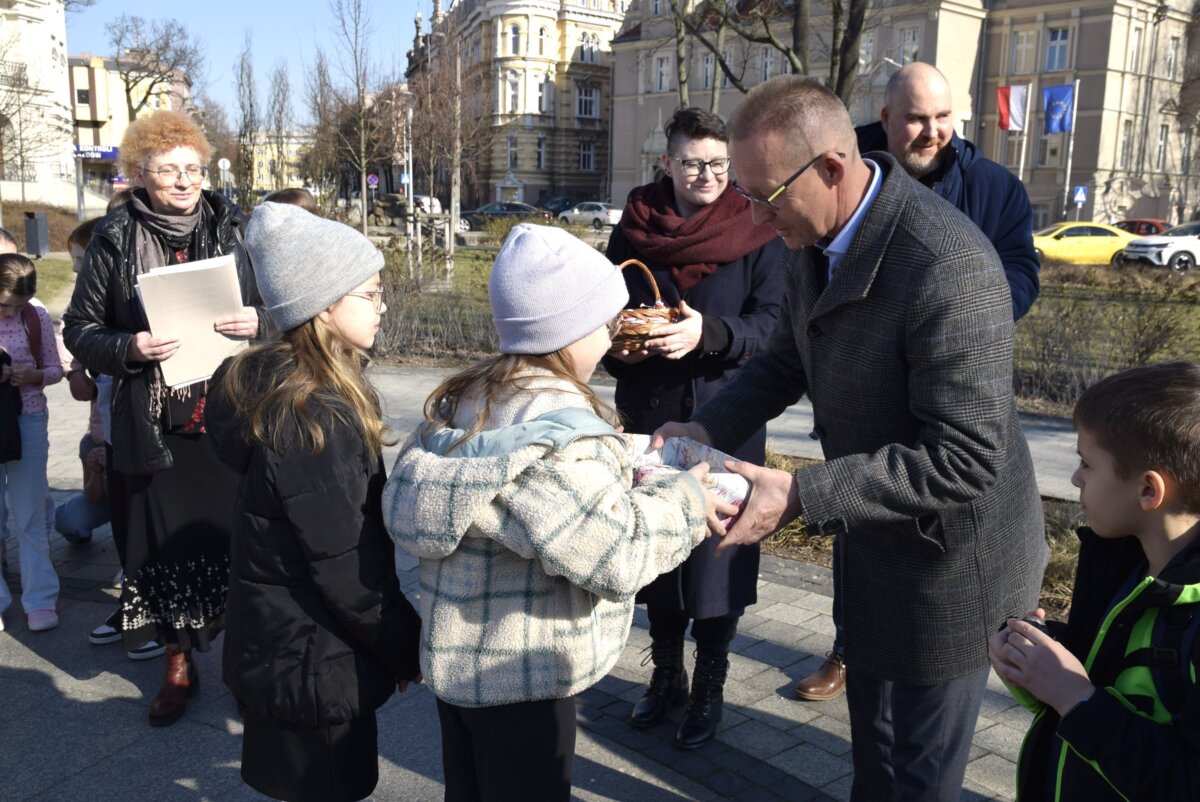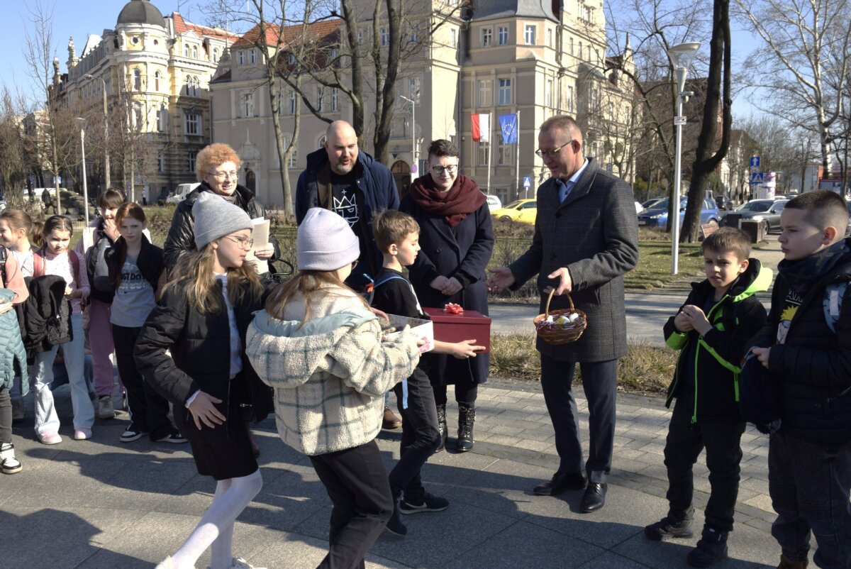 Prezydentowi Michałowi Powałowskiemu biblioteczna delegacja wraz z uczniami klas trzecich Szkoły Podstawowej nr 7 i 9 przekazała pomalowane kamyczki z motywami królewskimi. Posłużą one do zabawy bibliotecznej w ramach programu „Królewskie Gniezno Czyta”. Prezydent podziękował dzieciom, które ozdobiły kamyki, za ich zaangażowanie w promocję obchodów Gniezno 2025.