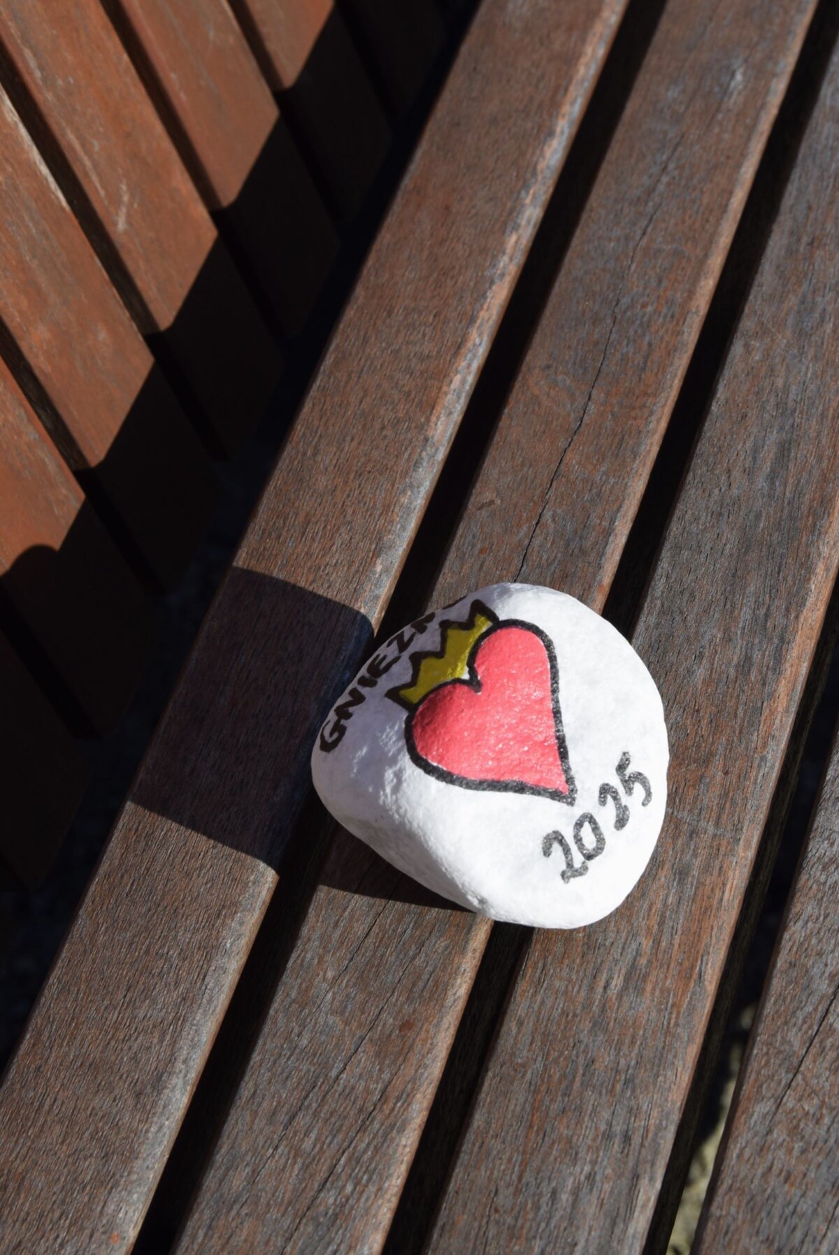 Następnie kamyki należy puścić w dalszą drogę. Można zostawić je w różnych miejscach miasta, przy okazji poznając Gniezno. Warto też niektóre z nich zabrać w podróż lub przekazać komuś, kto akurat się w nią udaje. W ten sposób kamienie wyjadą za granicę, pojadą w góry, podążą nad morze… Zanim pomalowane kamyki rozpoczną podróż, warto je pokazać w najbliższej placówce bibliotecznej, aby odebrać dyplom udziału: