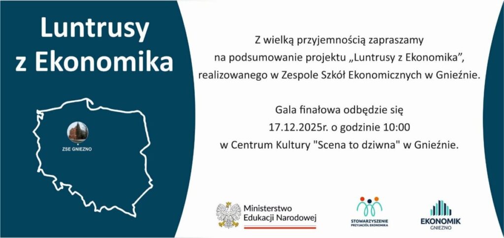 W Zespole Szkół Ekonomicznych w Gnieźnie zakończył się cykl działań realizowanych w ramach projektu „Luntrusy z Ekonomika” – wyjątkowej inicjatywy edukacyjno – kulturalnej, poświęconej popularyzacji gwary gnieźnieńskiej oraz wzmacnianiu lokalnej tożsamości młodzieży. Przez ostatnie tygodnie uczniowie udowodnili, że tradycja może być inspiracją do twórczych, nowoczesnych przedsięwzięć.