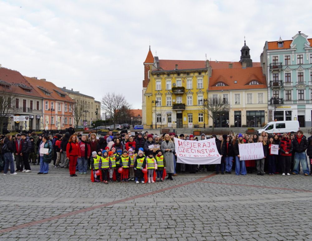 Kulminacją działań był marsz, który wyruszył sprzed I LO i dotarł na gnieźnieński rynek. Wzięli w nim udział nie tylko licealiści, ale także przedstawiciele Przedszkola nr 9 „Leśne Ludki”, Specjalnego Ośrodka Szkolno – Wychowawczego nr 2, II Liceum Ogólnokształcącego, Szkoły Mundurowej, a także mieszkańcy miasta. Na rynku uczestników powitała Daria Benke, etatowa członkini Zarządu Powiatu Gnieźnieńskiego, która podkreśliła wagę inicjatywy. – Uświadamiamy i budujemy poczucie bezpieczeństwa u dzieci. To jest bardzo ważne, żeby one wiedziały, że są dorośli, do których mogą się zwrócić w przypadku, kiedy poczują się źle, kiedy poczują brak stabilizacji, brak poczucia bezpieczeństwa. Dzisiaj przypominamy o tym, że przemoc to nie tylko uderzenie, że słowo może czasem ranić o wiele bardziej. Ważną kwestią jest także uwrażliwienie dorosłych, jak zareagować w takiej sytuacji, kiedy dziecko lub nastolatek przyjdzie opowiedzieć o swojej historii – mówiła Daria Benke. W podobnym tonie wypowiedziała się Anna Dziurleja, pedagog szkolna i opiekunka Szkolnego Koła Wolontariatu „Pomocni”, działającego przy I LO, zwracając uwagę na to, że wydarzenie miało nie tylko charakter edukacyjny, ale także społeczny – było swoistym apelem o większą świadomość i solidarność wobec problemu przemocy wobec dzieci.