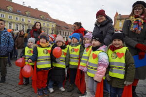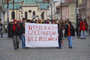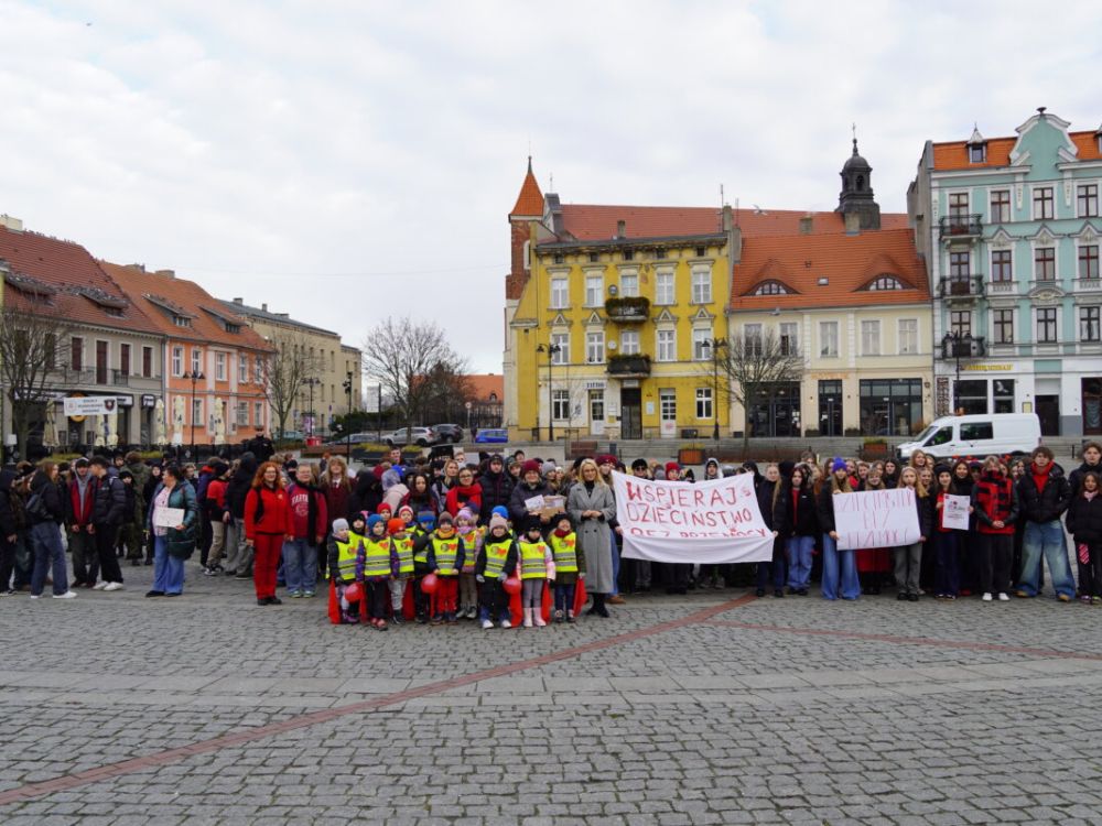 Kulminacją działań był marsz, który wyruszył sprzed I LO i dotarł na gnieźnieński rynek. Wzięli w nim udział nie tylko licealiści, ale także przedstawiciele Przedszkola nr 9 „Leśne Ludki”, Specjalnego Ośrodka Szkolno – Wychowawczego nr 2, II Liceum Ogólnokształcącego, Szkoły Mundurowej, a także mieszkańcy miasta. Na rynku uczestników powitała Daria Benke, etatowa członkini Zarządu Powiatu Gnieźnieńskiego, która podkreśliła wagę inicjatywy. – Uświadamiamy i budujemy poczucie bezpieczeństwa u dzieci. To jest bardzo ważne, żeby one wiedziały, że są dorośli, do których mogą się zwrócić w przypadku, kiedy poczują się źle, kiedy poczują brak stabilizacji, brak poczucia bezpieczeństwa. Dzisiaj przypominamy o tym, że przemoc to nie tylko uderzenie, że słowo może czasem ranić o wiele bardziej. Ważną kwestią jest także uwrażliwienie dorosłych, jak zareagować w takiej sytuacji, kiedy dziecko lub nastolatek przyjdzie opowiedzieć o swojej historii – mówiła Daria Benke. W podobnym tonie wypowiedziała się Anna Dziurleja, pedagog szkolna i opiekunka Szkolnego Koła Wolontariatu „Pomocni”, działającego przy I LO, zwracając uwagę na to, że wydarzenie miało nie tylko charakter edukacyjny, ale także społeczny – było swoistym apelem o większą świadomość i solidarność wobec problemu przemocy wobec dzieci.